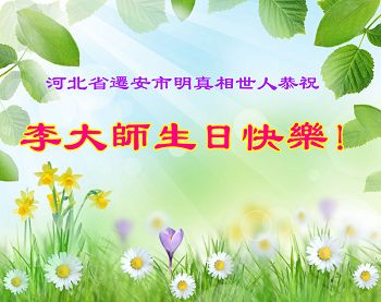 河北省承德市平泉县南北学法小组全体大法弟子热烈庆祝世界法轮大法日!恭贺师尊生日快乐!河北省沧州市青县全体大法弟子恭祝师尊生日快乐暨法轮大法日!河北省邢台市沙河市河城全体大法弟子恭祝师尊生日快乐!河北沧州大法弟子恭祝师尊生日快乐!河北省邯郸大法弟子母女恭祝慈悲伟大的师父生日快乐!河北省邯郸市峰峰矿区一学法小组全体大法弟子叩拜师父的慈悲苦度,恭祝师尊生日快乐!纵有千言万语也难以表达我们对师父的感恩和思念,唯有精進实修,努力助师正法,做好三件事,才能回报师父的洪恩。