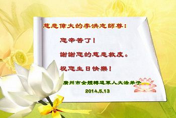 甘肃省兰州新得法的大法弟子恭祝师尊生日快乐!恭贺世界法轮大法日!江苏南京大法新学员及全家恭贺五月十三日世界法轮大法日!恭祝师尊华诞!山东省新得法的大法弟子恭贺师尊华诞暨世界法轮大法日!