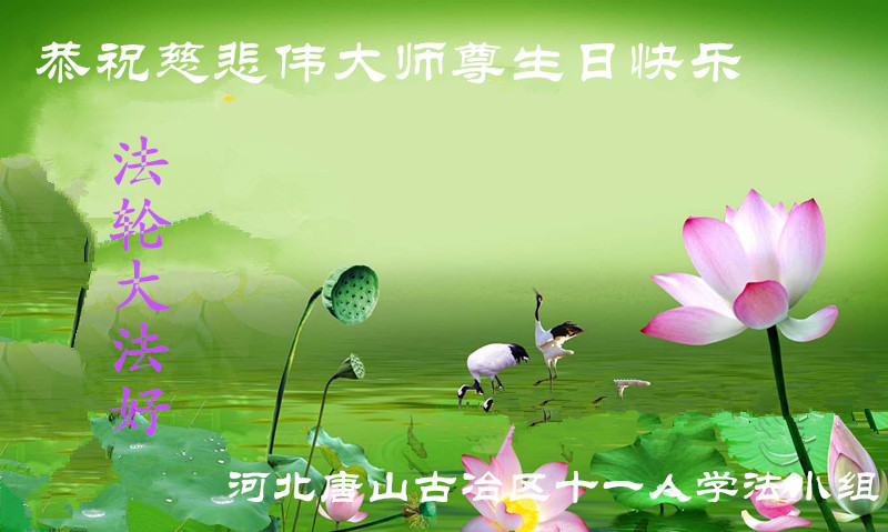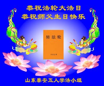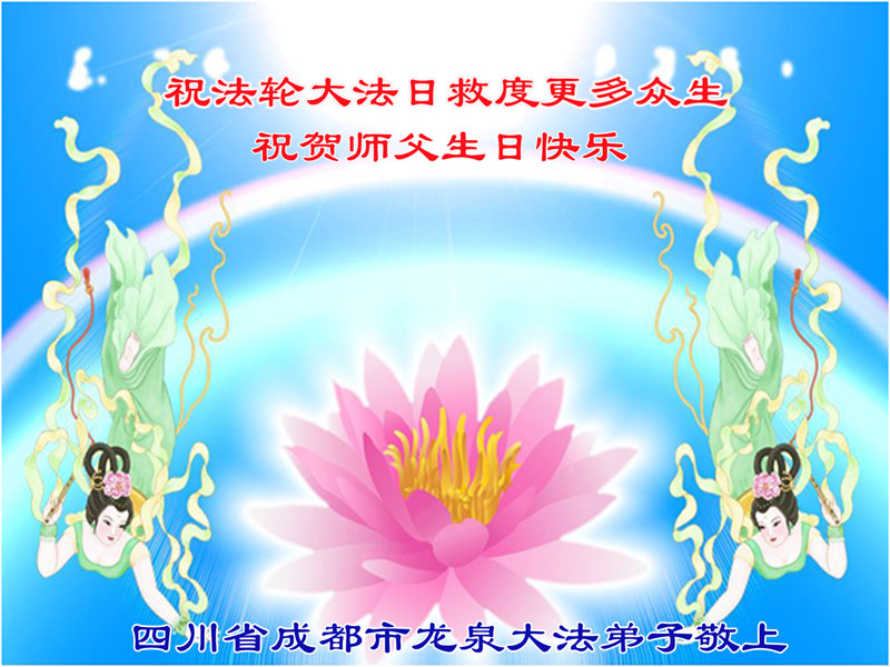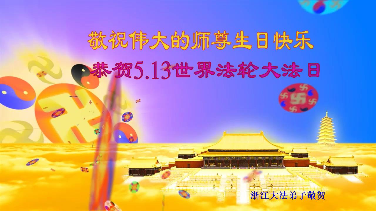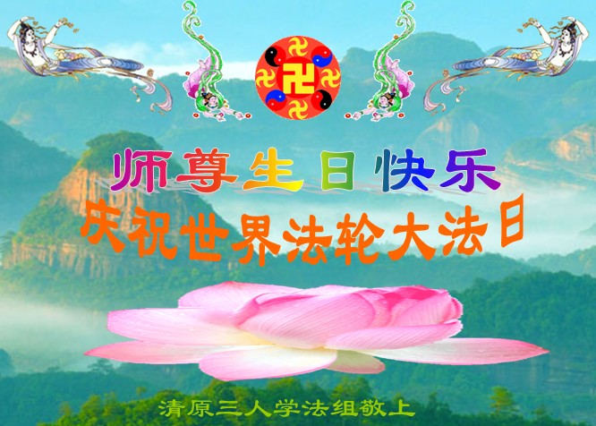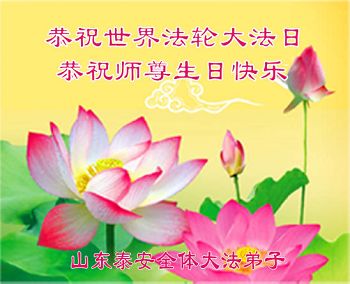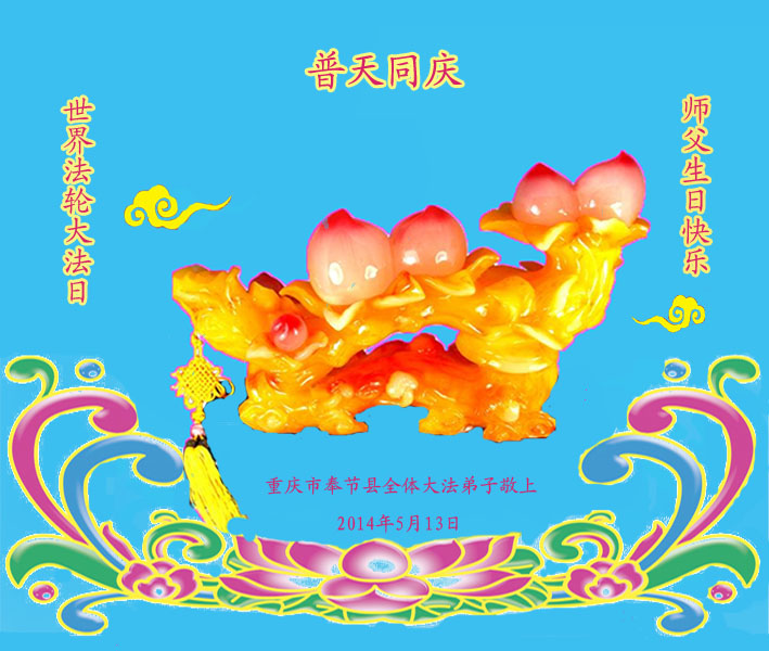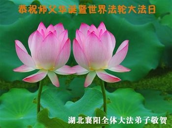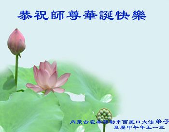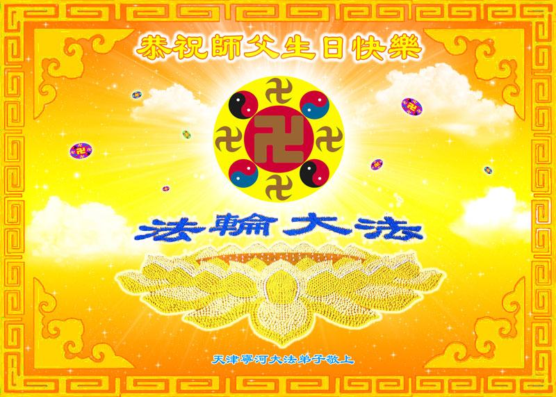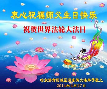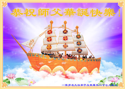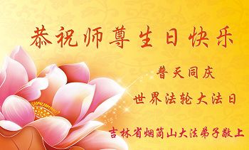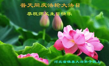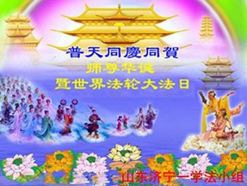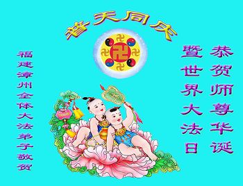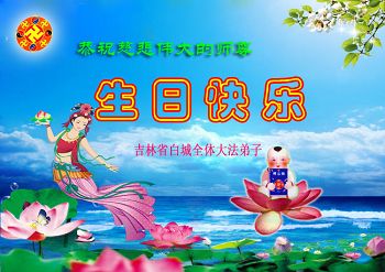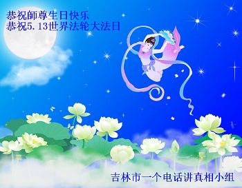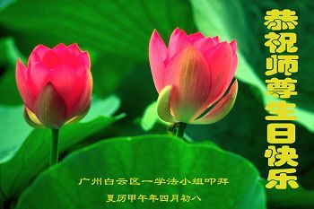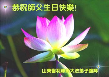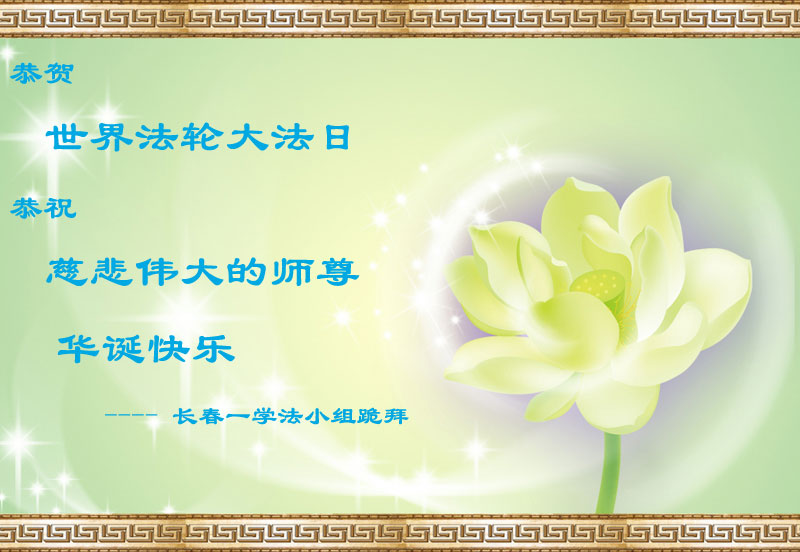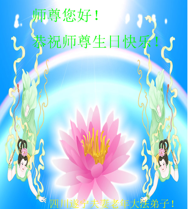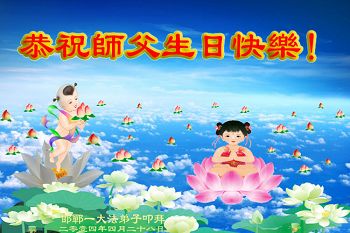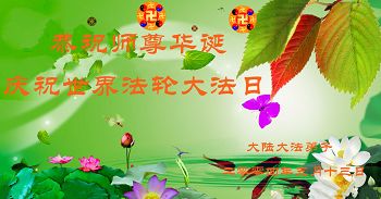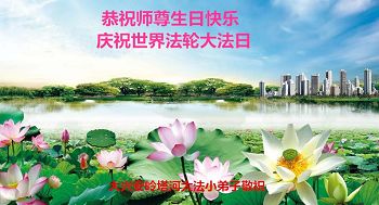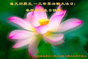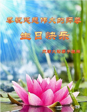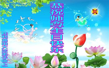 郑先生说:“在修炼过程中,碰到任何困难,我们在一起学法、一起交流,破除一切障碍,因为我们知道,我们最终的目的是跟师尊返回我们真正的家园,任何困难都不能阻碍我们。谢谢师尊给我们宇宙中最好的一切。我们是这宇宙中最幸福的生命,我们会珍惜这万古机缘。法轮大法好,祝师尊生日快乐。”