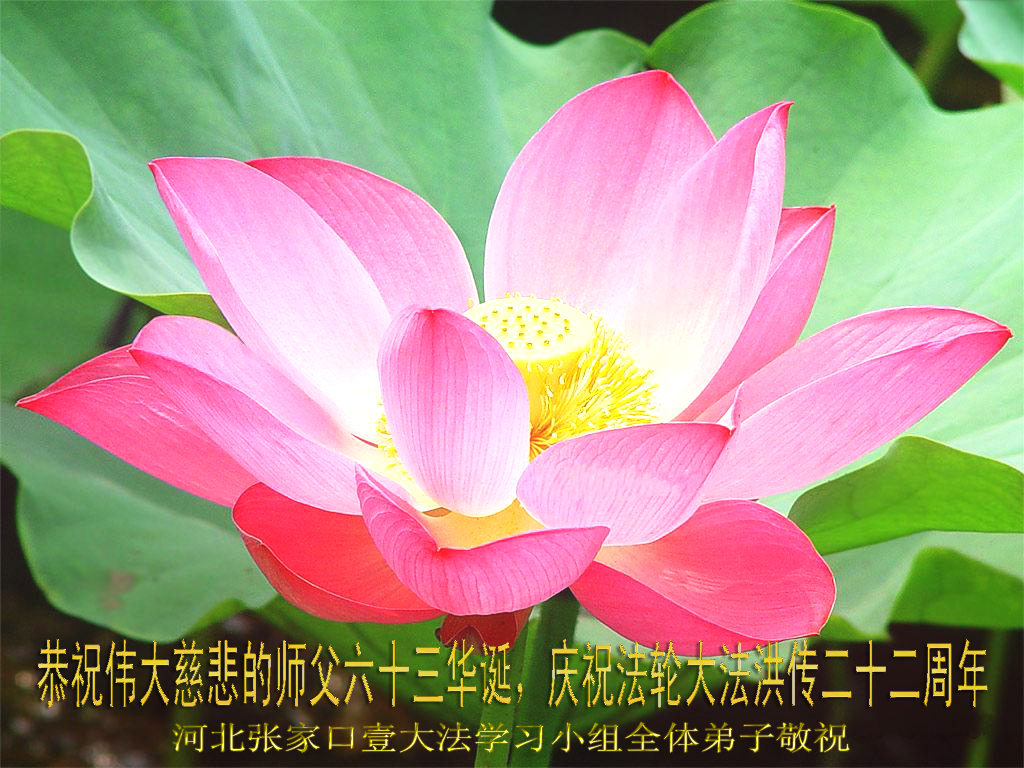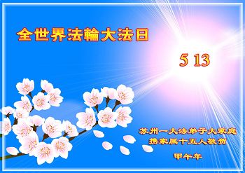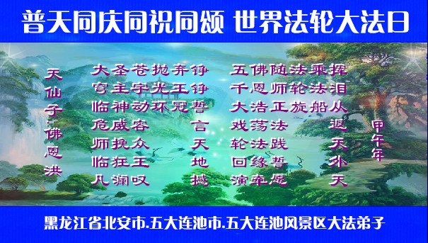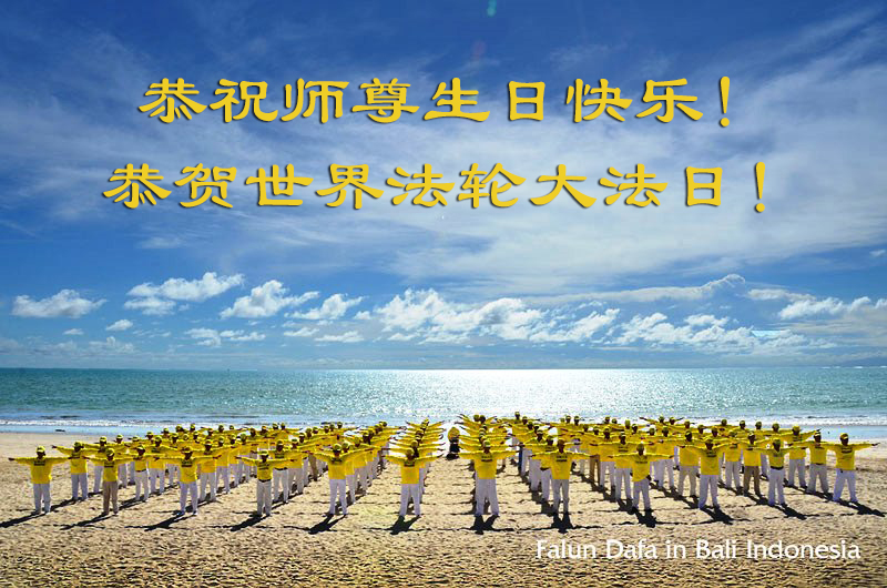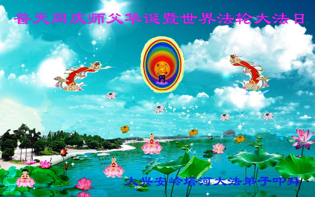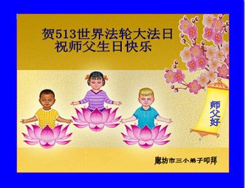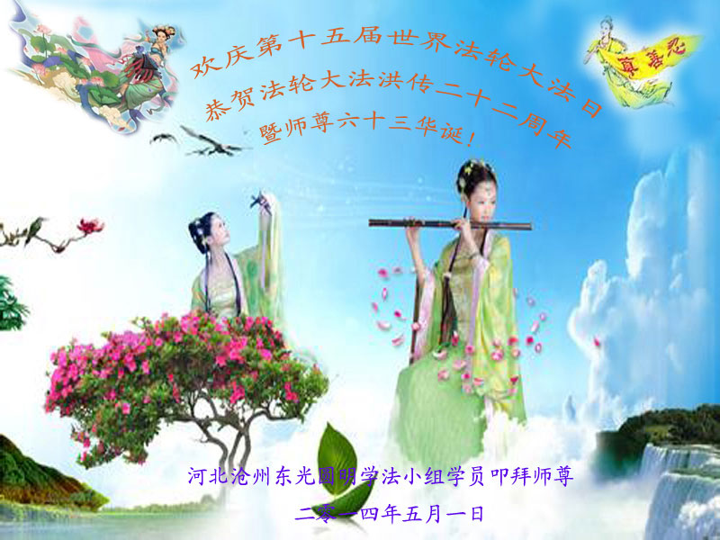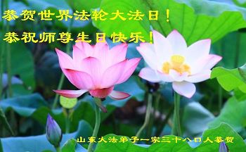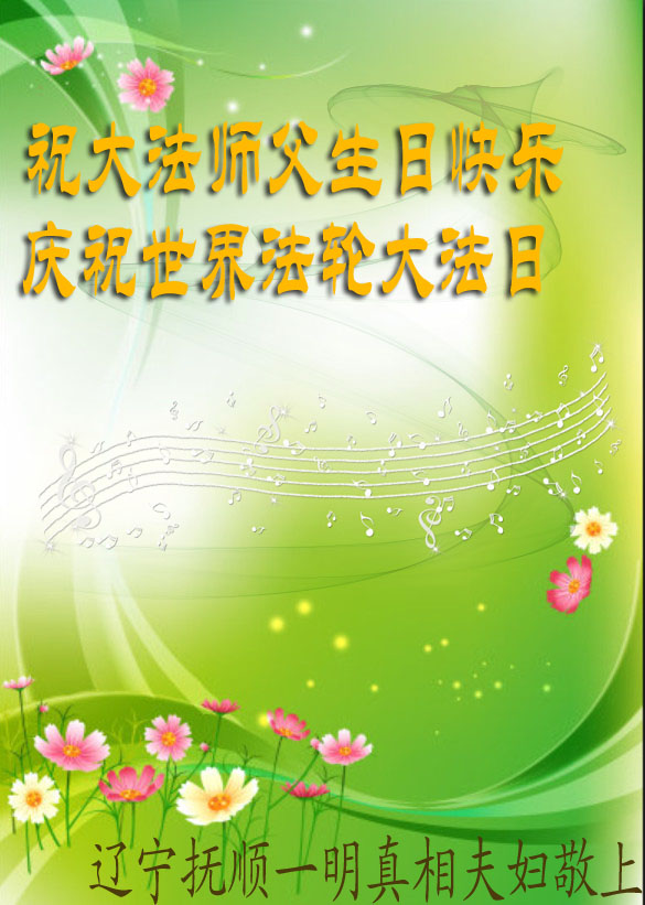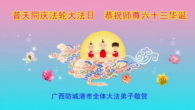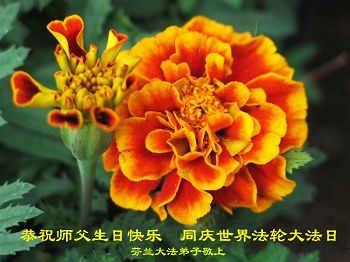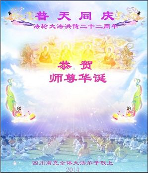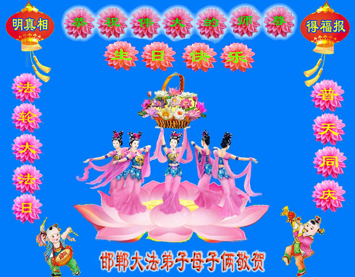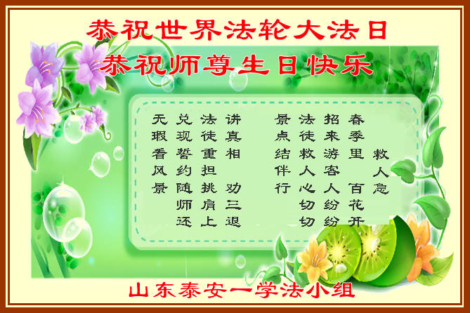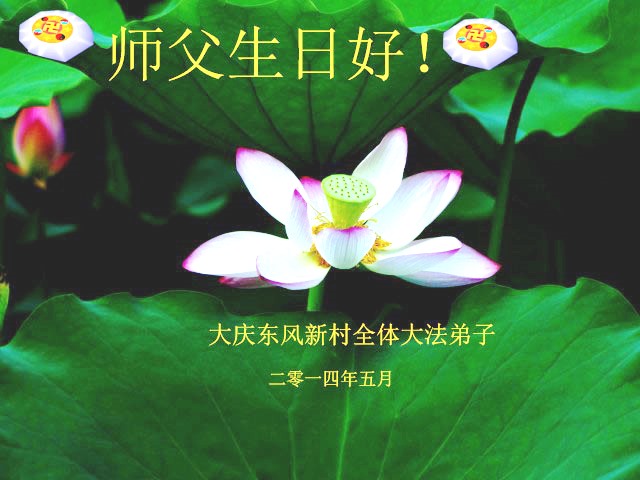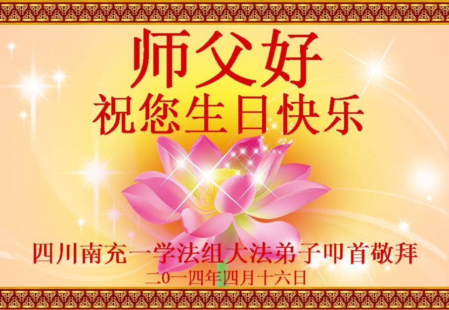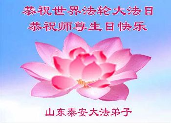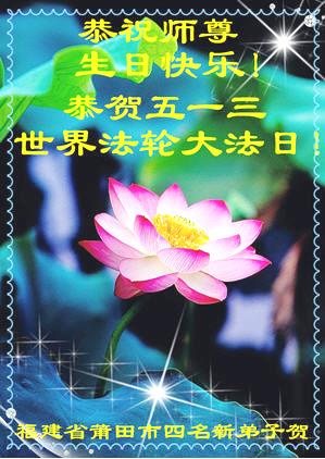 郑先生说:“在修炼过程中,碰到任何困难,我们在一起学法、一起交流,破除一切障碍,因为我们知道,我们最终的目的是跟师尊返回我们真正的家园,任何困难都不能阻碍我们。谢谢师尊给我们宇宙中最好的一切。我们是这宇宙中最幸福的生命,我们会珍惜这万古机缘。法轮大法好,祝师尊生日快乐。”