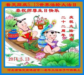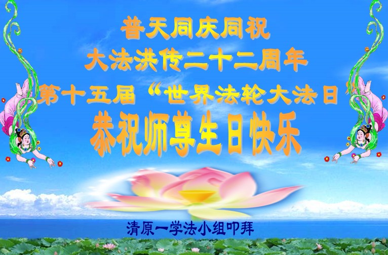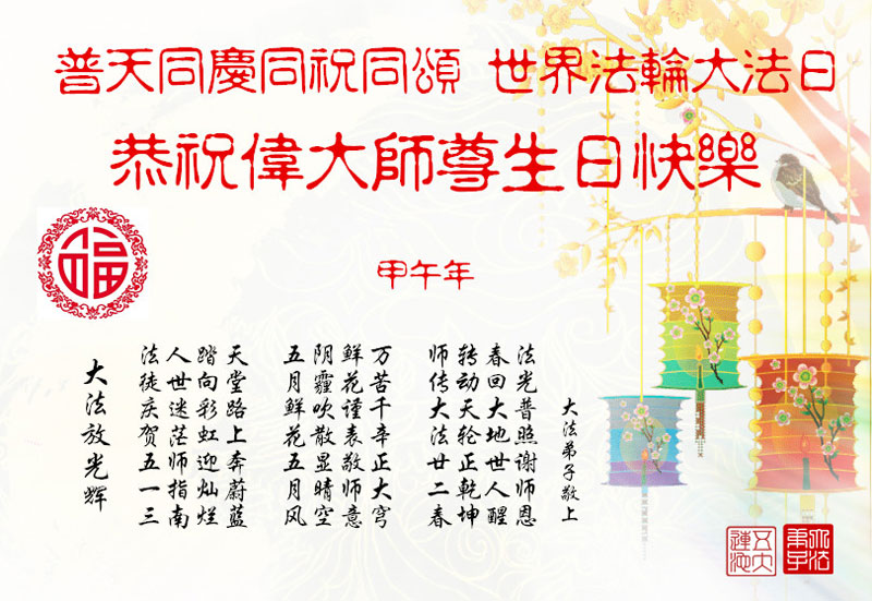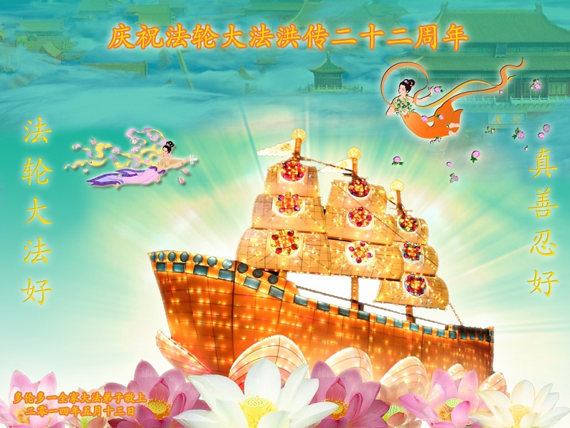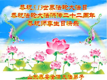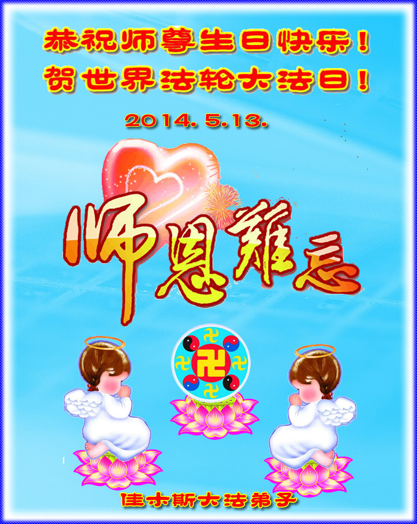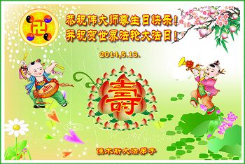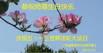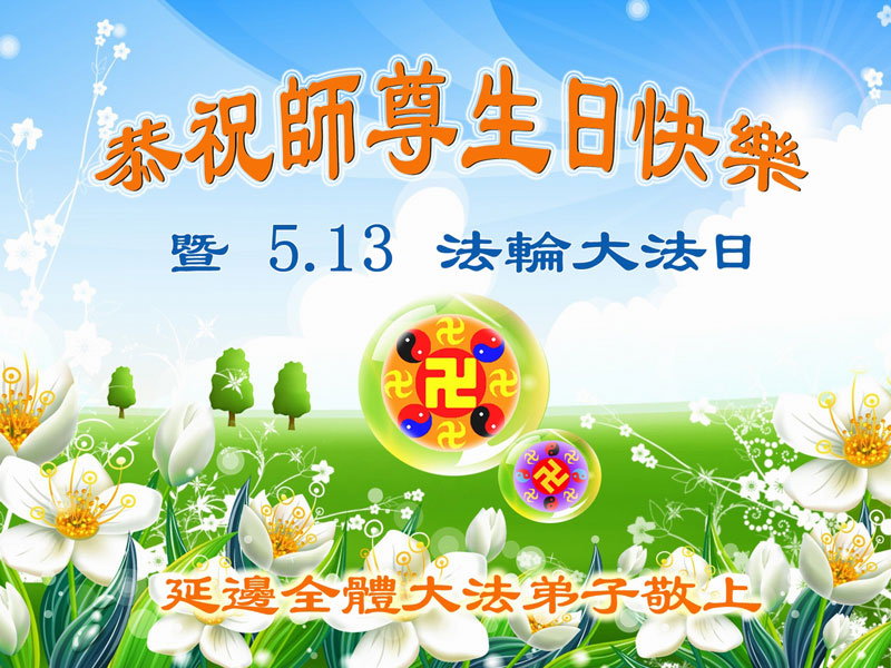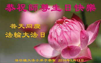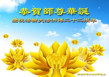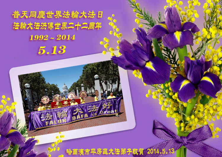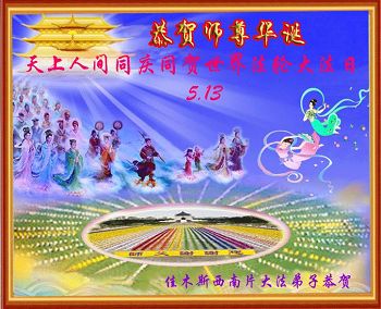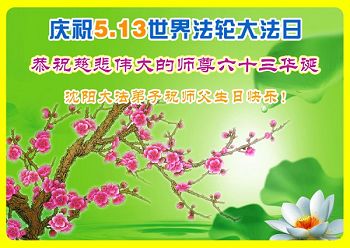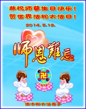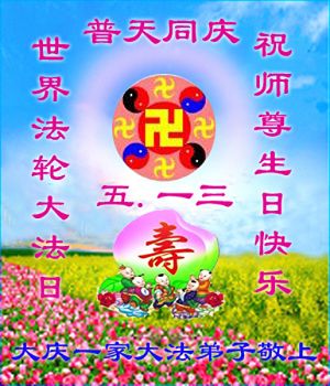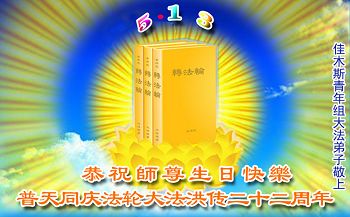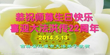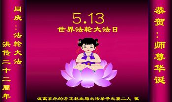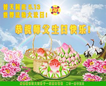 今年的五月十三日,是李洪志先生公开向社会传授法轮大法的第二十二个纪念日,也是李先生华诞。在这个普天同庆的节日里,法轮功学员不但向世人展示法轮大法的美好,而且还分享了他们自身修炼法轮大法后身心受益后的巨大变化和神迹,他们衷心祝愿他们的恩师李洪志先生生日快乐并表示无比的感恩和怀念。