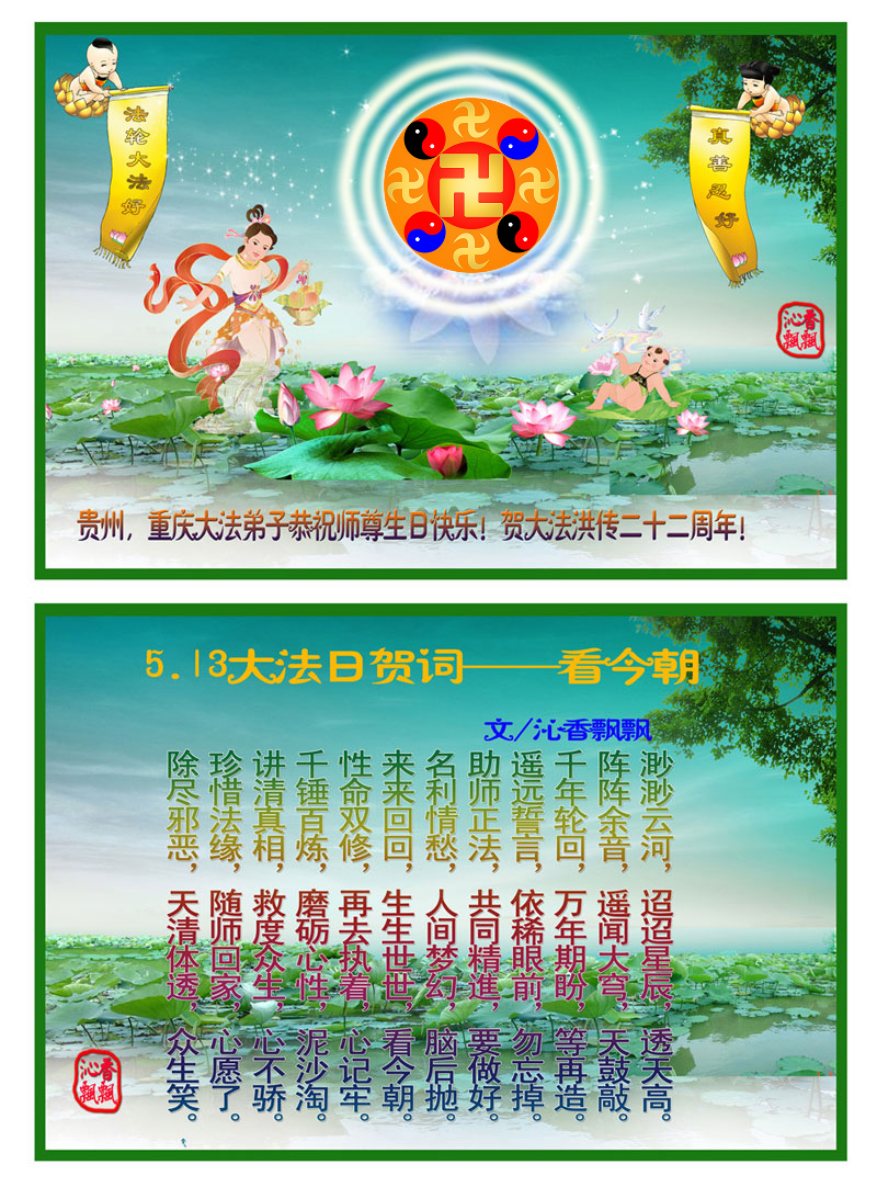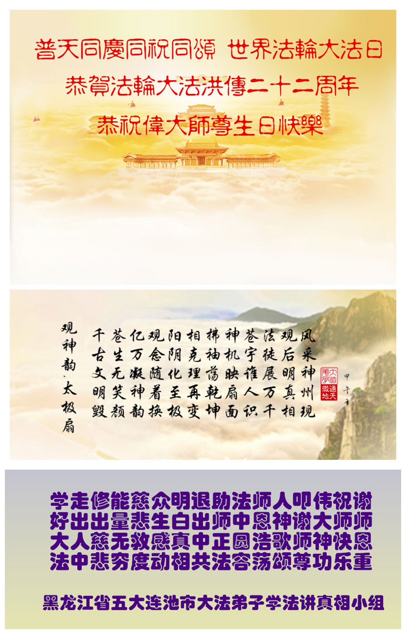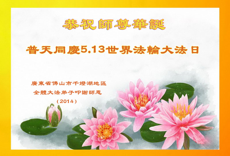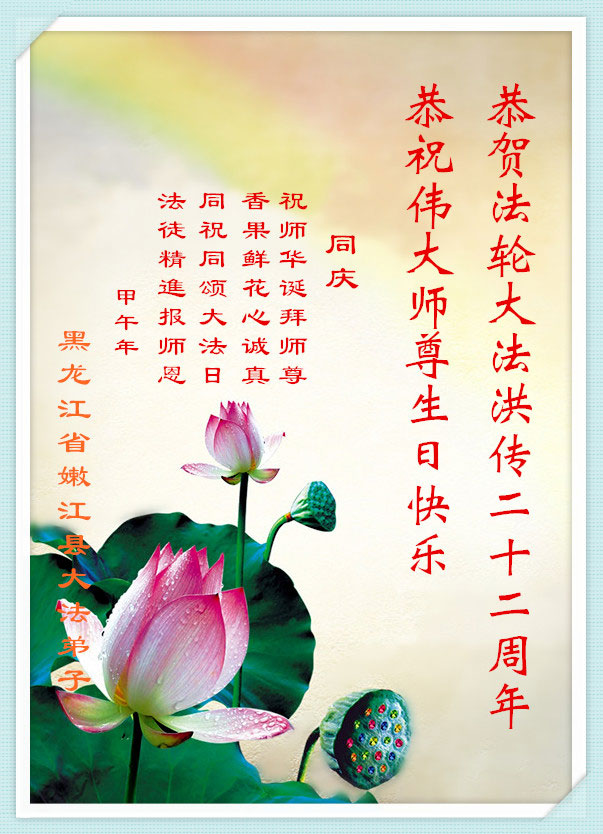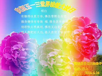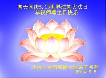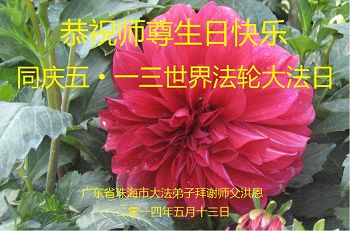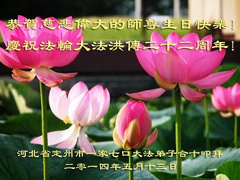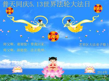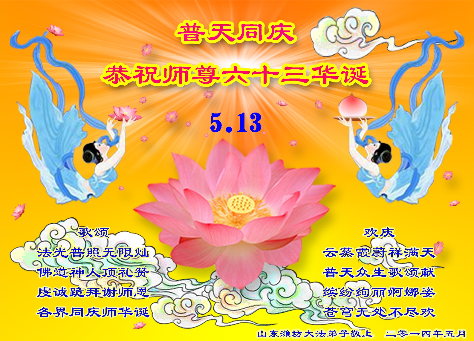 今年的五月十三日,是李洪志先生公开向社会传授法轮大法的第二十二个纪念日,也是李先生华诞。在这个普天同庆的节日里,法轮功学员不但向世人展示法轮大法的美好,而且还分享了他们自身修炼法轮大法后身心受益后的巨大变化和神迹,他们衷心祝愿他们的恩师李洪志先生生日快乐并表示无比的感恩和怀念。