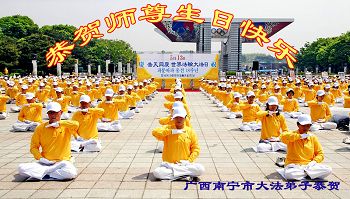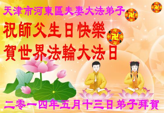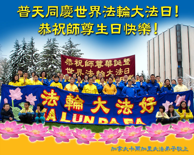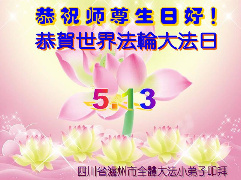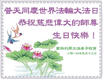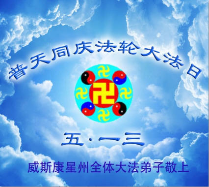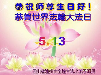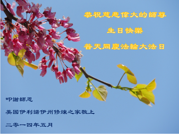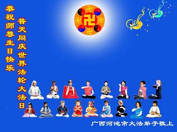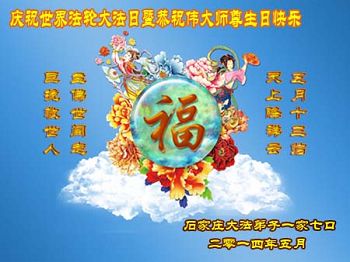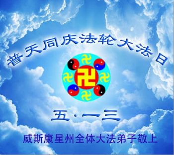 ![]() 圣路易法轮功学员恭祝师父生日快乐,庆祝世界法轮大法日。 |