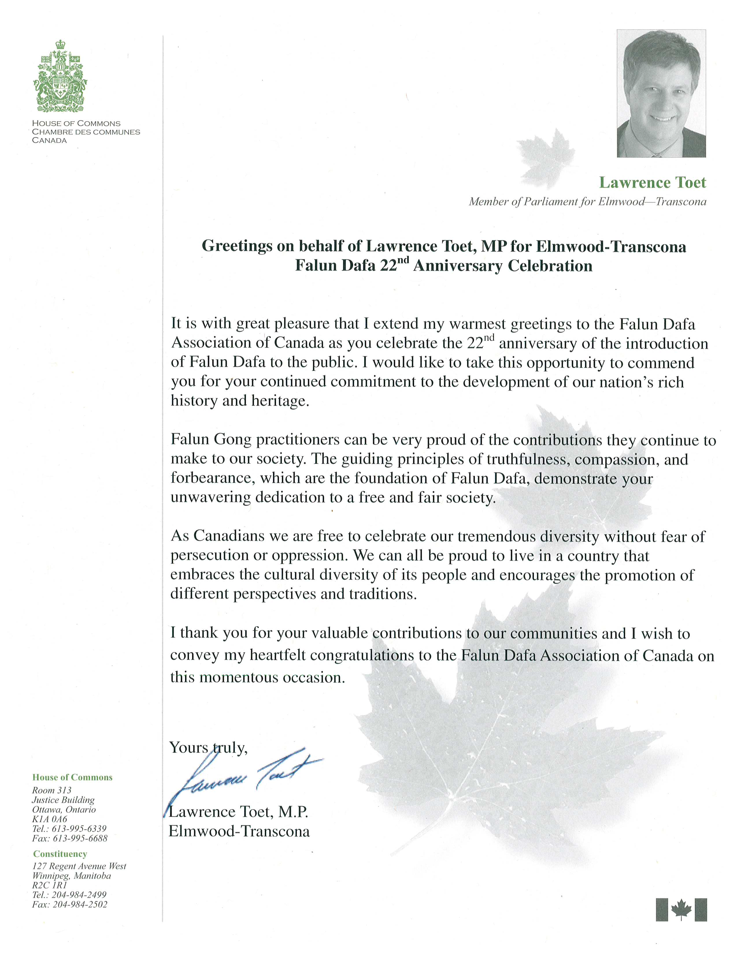 他说,我参与法轮功活动、帮助传播法轮功的真相信息已经六年了。我建了一个网站,专门给人们提供关于中国的真实信息,我将迫害的真相信息发电邮给尽可能多的人,我也给很多报纸写文章,告诉人们为什么应该抵制中共,并且不要买中国奴工生产的产品。这是我能做的,我希望我能做更多……我很高兴今天这么多人在这里参加游行,如此平和的修炼在中国被禁令人难过,我感到应该对我们在这里所拥有的自由心存感激。今天是法轮大法日,我想对他们(法轮功学员)道一声祝贺,感谢他们让世界了解迫害真相,这些年来我遇到好多法轮功学员,我对他们的聪明、智慧、知识和平和的态度印象很深。