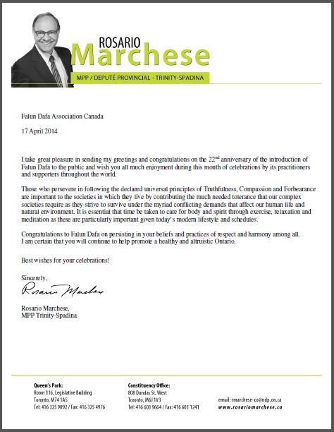 了解了法轮功真相的市议员和常人也特意赶来支持并参加游行。他们无不赞美法轮功提倡的“真、善、忍”普世原则。