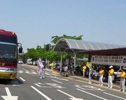 【明慧网二零一四年五月十一日】在世界法轮大法日到来之际,二零一四年五月十日,韩国天安市和水源市法轮功学员,来到新开辟不久的退党景点,给中国人讲法轮功真相,劝他们退出中共党、团、队(简称三退)。每个学员都希望把法轮大法的美好传递给中国大陆民众,希望善良人能拥有美好未来。