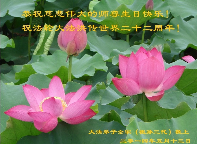 和先生和张女士全家全家六口最后齐声向李洪志师尊表示感恩:“感谢师尊救度之恩。恭祝师尊生日快乐。”