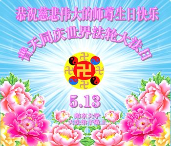 江苏省南京大学大法弟子恭祝慈悲伟大的师尊生日快乐!普天同庆5.13世界法轮大法日!陕西教育界大法弟子恭祝慈悲伟大的师尊生日快乐!浙江教育系统大法弟子恭贺五•一三世界法轮大法日!