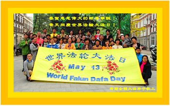 为庆祝第十五届“世界法轮大法日”,让更多人了解法轮功以及发生在中国的迫害事实,二零一四年五月十日,法轮功学员在荷兰首都阿姆斯特丹的皇宫门前达姆广场举行讲真相活动。