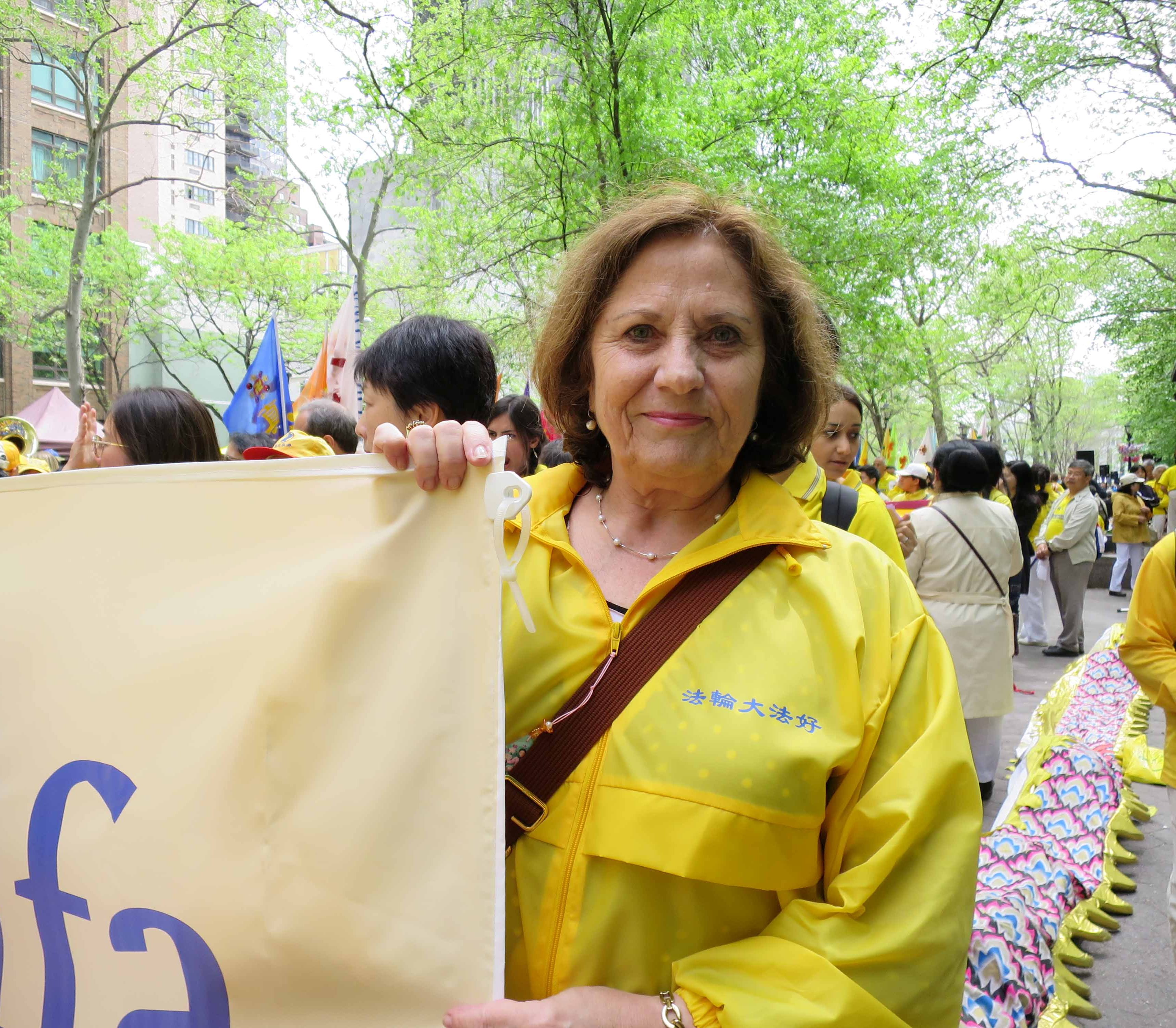 修炼法轮功快三年的奥地利学员伊莎贝拉(Isabella)说她到纽约来是因为“要参加法轮大法的庆祝活动。”“我来是希望展示真、善、忍的美好,也希望通过活动可以制止中共迫害法轮功,”