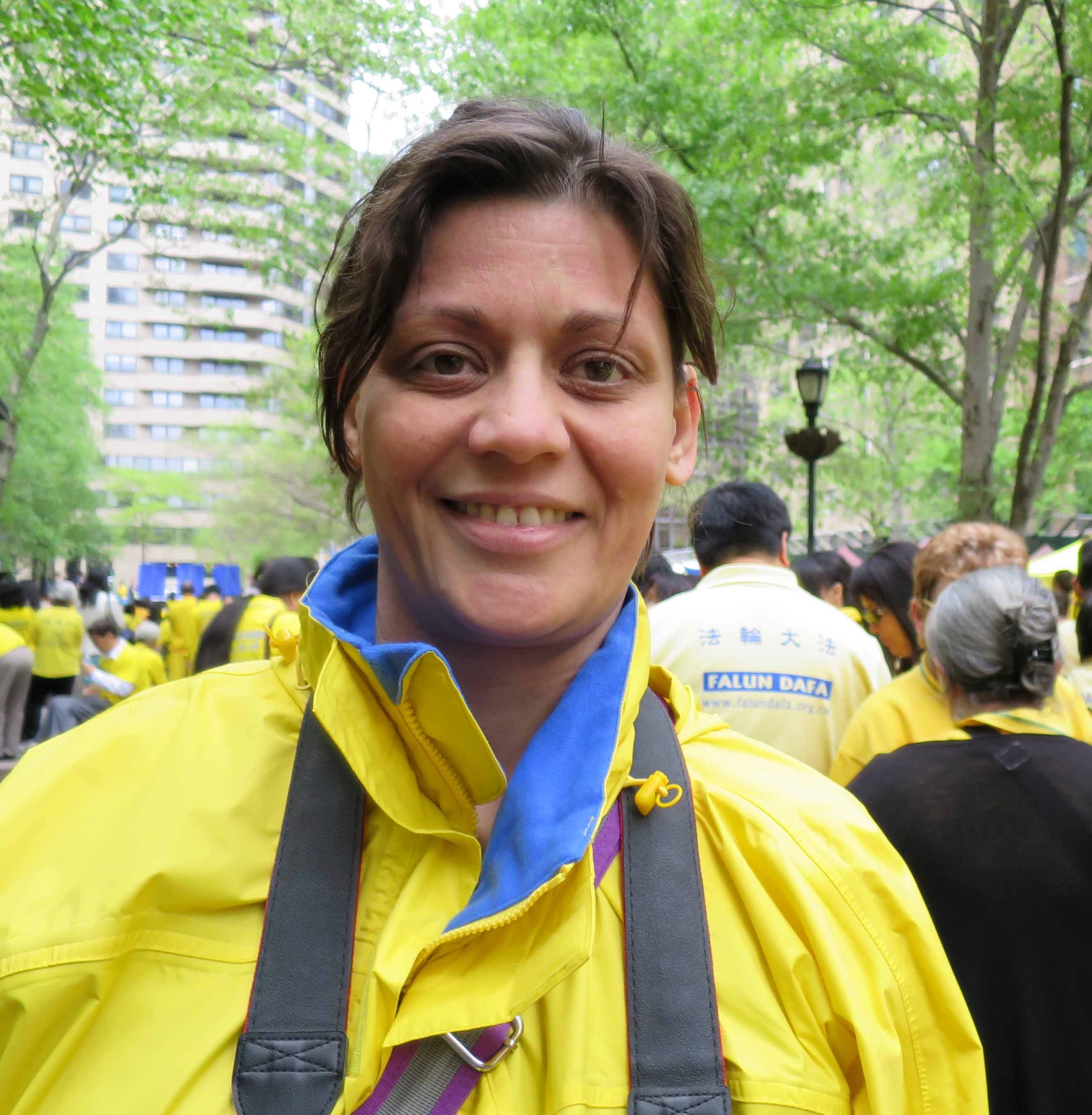 她还说来到纽约是因为“希望给人们带来一条的正路——真、善、忍,(中共)对这样的法轮功学员进行迫害,天理不容。”