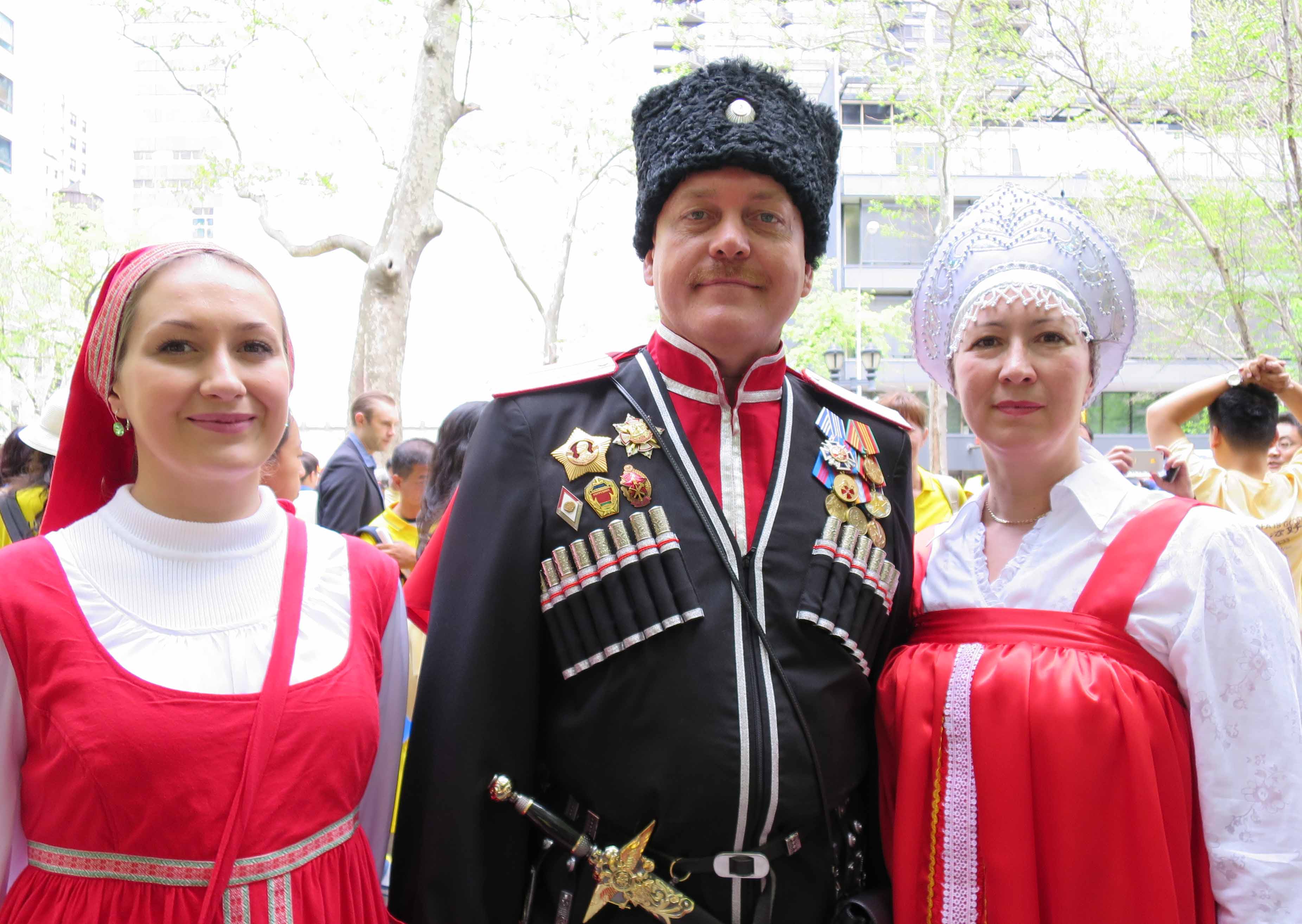 从俄罗斯南部赶来参加游行的伊万(Ivan Kugimov)穿着哈萨克族军装,格外神气和威武,伊万解释了他为何穿军装游行,他说:因为那里的人民曾遭受过前苏联共产党的迫害。伊万说:“我希望展示在俄罗斯也有法轮大法学员,也要展示法轮大法的美好。”“我感到非常荣幸能够来支持遭受中共非法迫害的法轮功学员和加入世界上最好的法轮功的游行队伍。”
