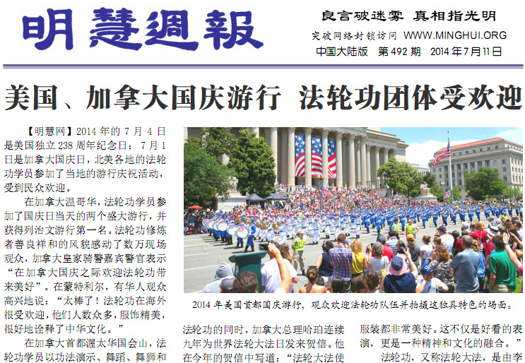 美国、加拿大国庆游行 法轮功团体受欢迎