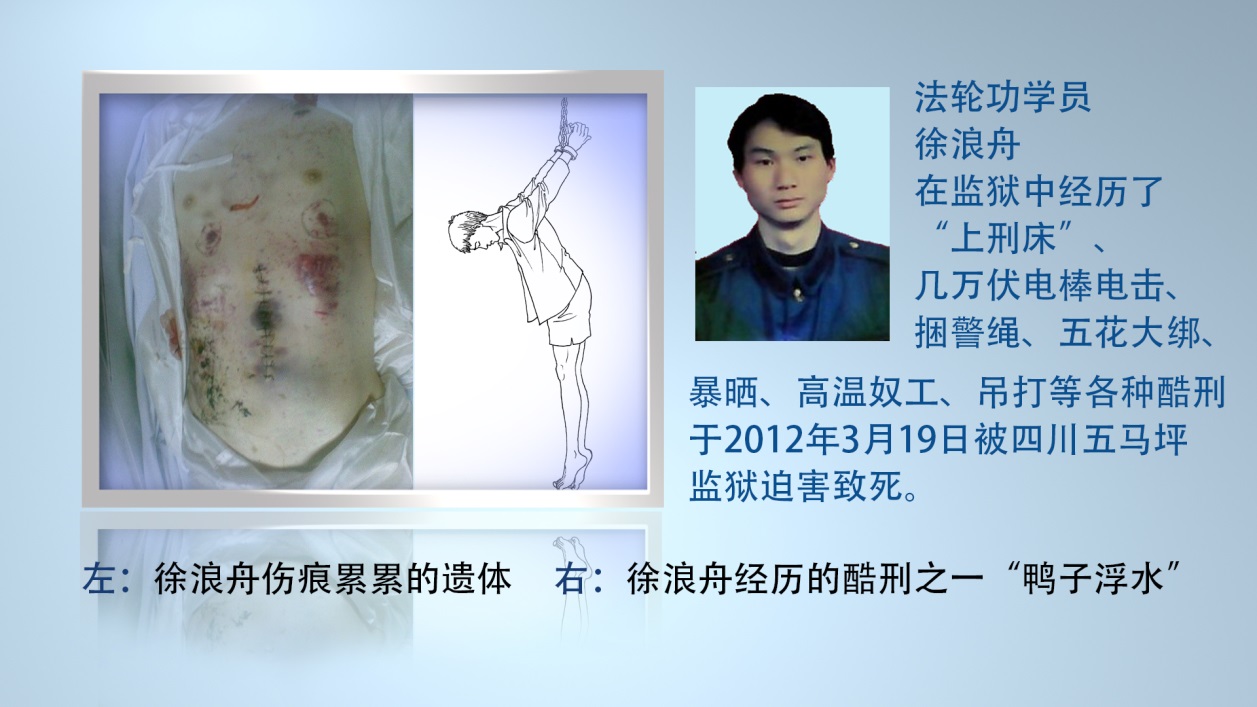 “儿子五岁时我丈夫就去世了,我守寡几十年独自把一双儿女拉扯大,容易吗?儿子是我的希望,是我的依靠,我儿非常孝顺善良,他曾对我说‘今后就是要饭,也要背着妈妈一道’。我含辛茹苦养大的儿子,健健康康的,才39岁就被害死了,他们(指五马坪监狱)还说他们没有责任。”这是被迫害致死法轮功学员徐浪舟母亲的控诉。