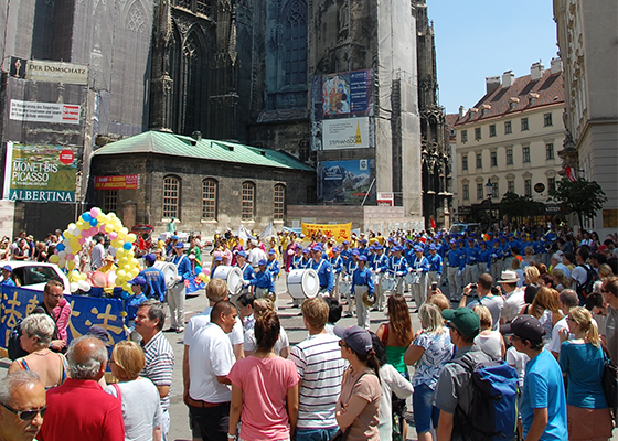 七月十九日,奥地利法轮功学员和周边匈牙利、捷克和斯洛伐克部份法轮功学员,以及欧洲天国乐团在奥地利首都维也纳举行集会游行,呼吁关注中共对法轮功学员长达十五年的残酷迫害。