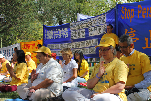 一位五十多岁的先生听了法轮功学员讲述在中国发生的对法轮功的残酷迫害后,眼中闪着泪光,他告诉学员说,他来自东欧前共产国家,深知共产党的邪恶。他希望早日结束迫害。