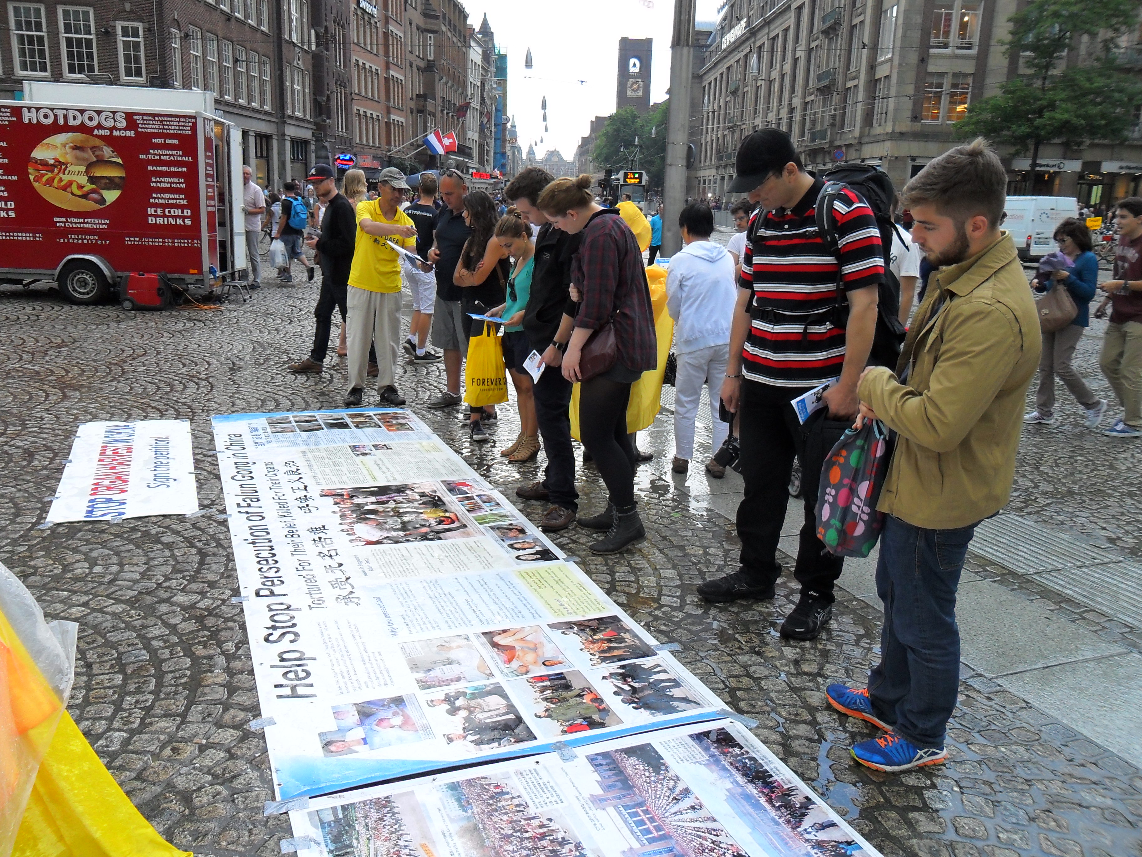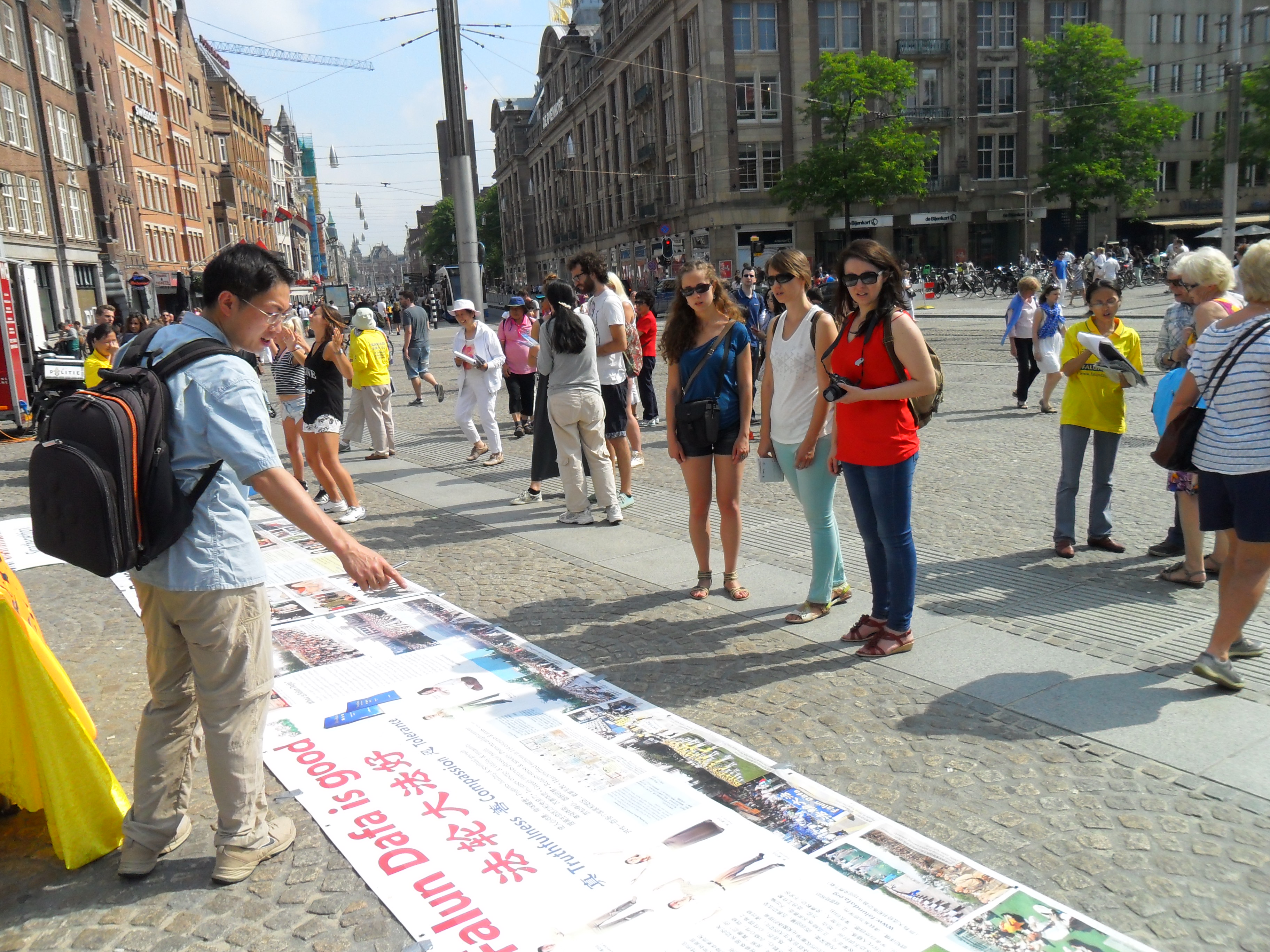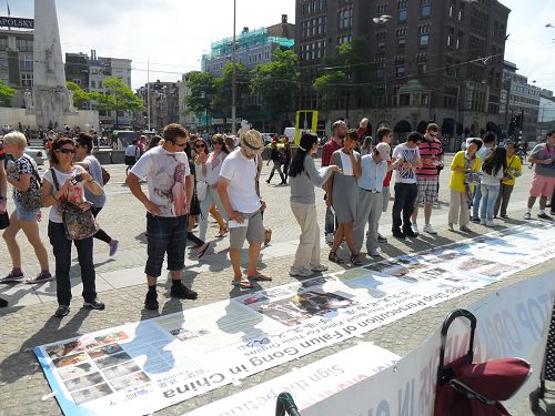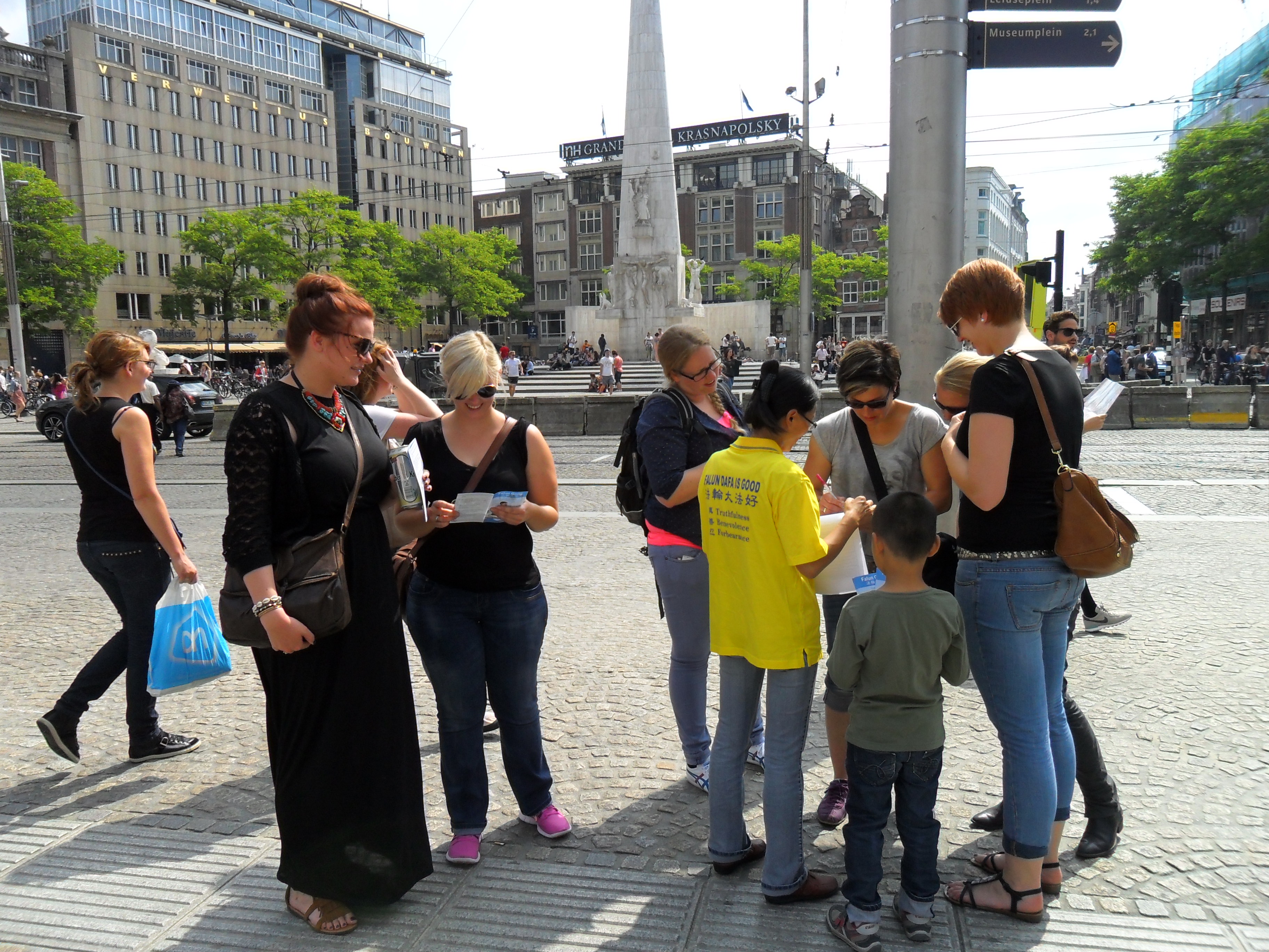 ![]() 纪念和平反迫害十五周年,荷兰学员在阿姆斯特丹著名的达姆广场设立真相点,大批游人驻足阅读真相图片,了解真相。 |
