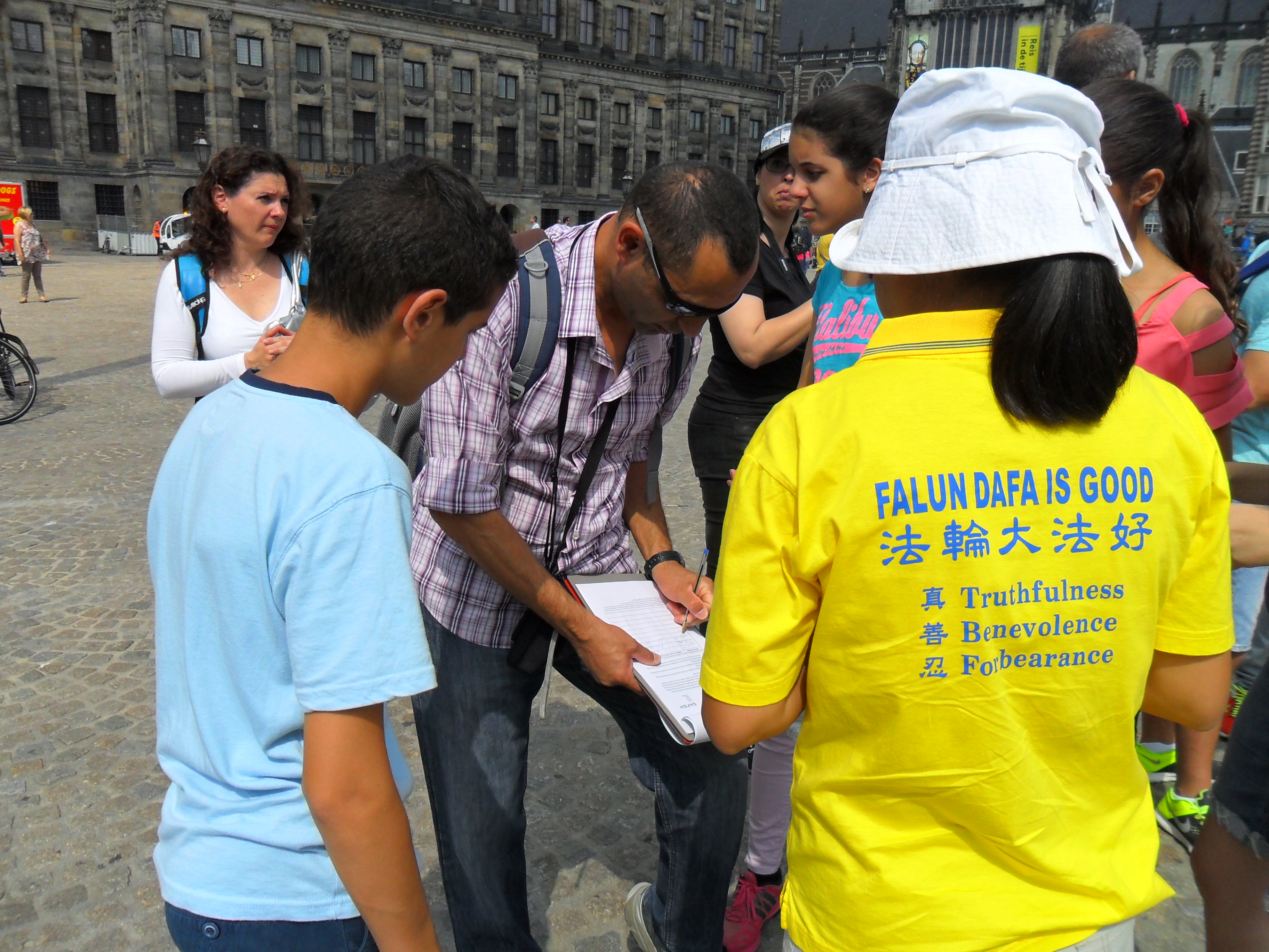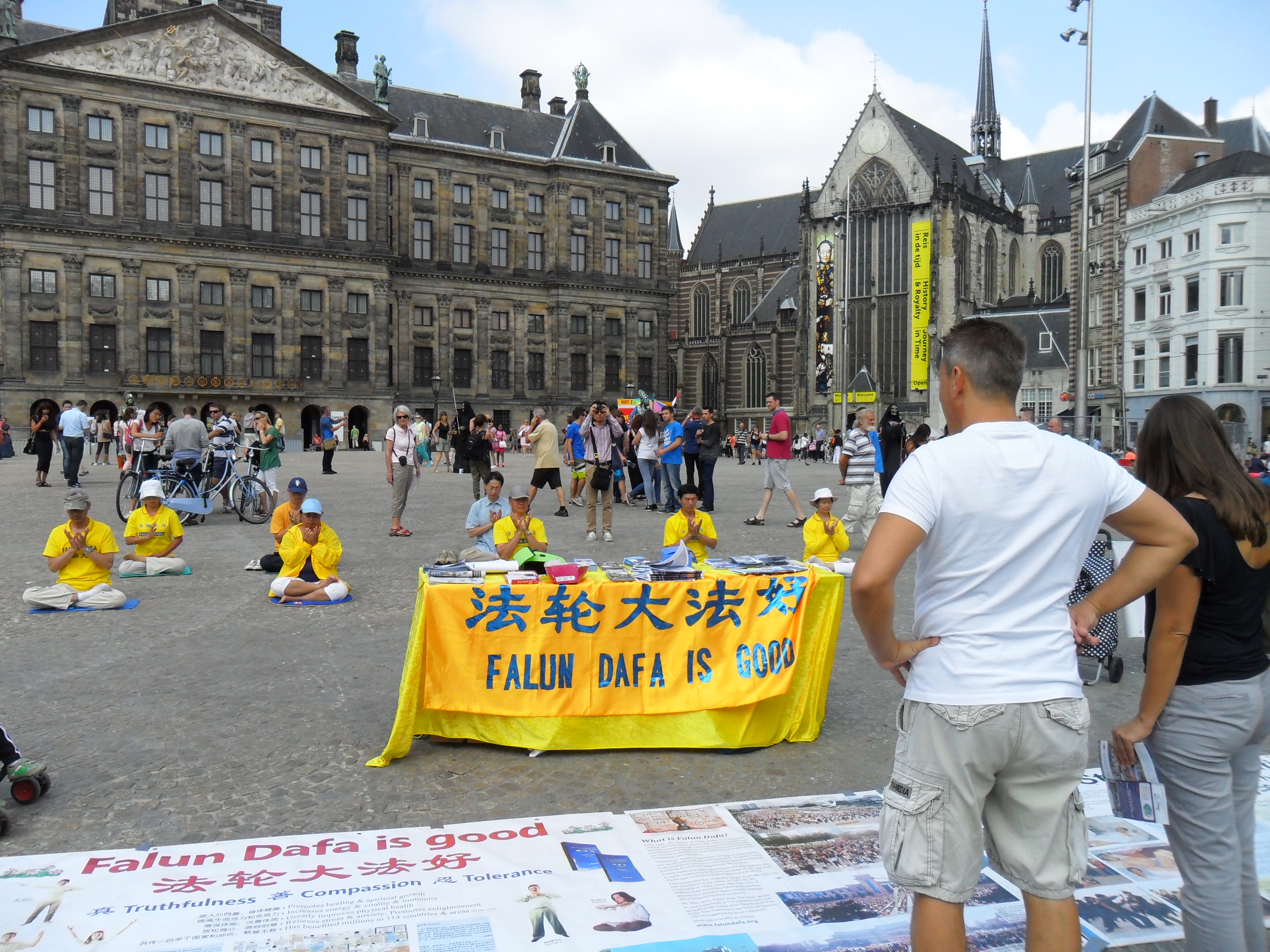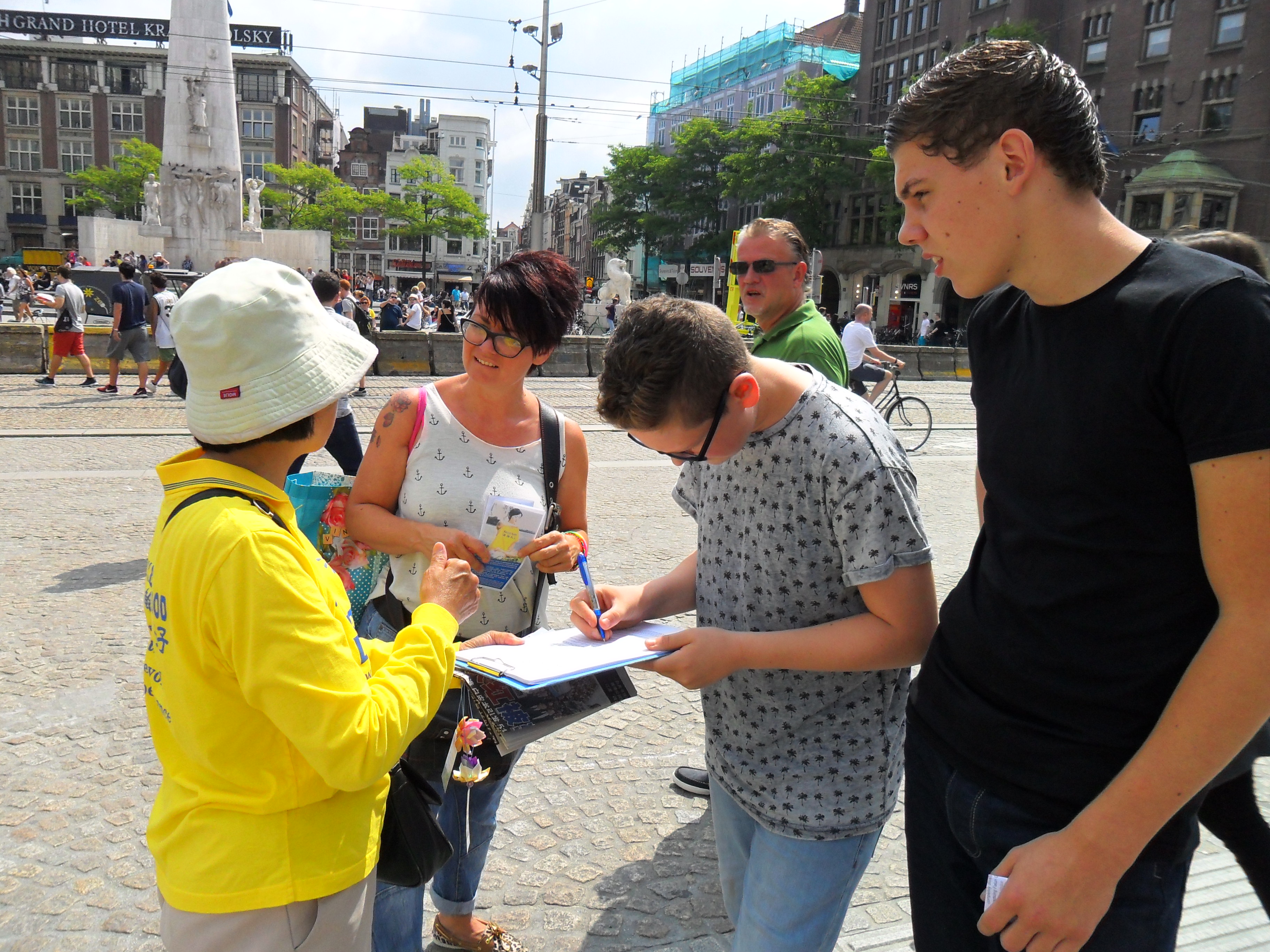 ![]() 纪念和平反迫害十五周年,荷兰学员在阿姆斯特丹著名的达姆广场设立真相点,大批游人驻足阅读真相图片,了解真相。 |