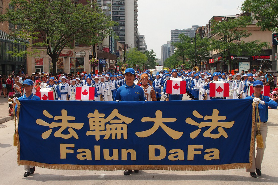 【明慧网二零一四年七月四日】二零一四年七月一日是加拿大国庆日,加拿大日游行作为蒙特利尔城每年最重要的两个节庆游行之一,汇集了来自全世界各族裔的移民参加和观看。由纽约、蒙特利尔、魁北克、渥太华的法轮功学员组成的天国乐团,第七次参加蒙特利尔的加拿大国庆日游行,受到观众的喜爱和欢迎:有观众说每年特意为他们而来;有华人观众表示法轮功的队伍服饰精美,很好地诠释了中华文化;还有华人夫妇主动希望和天国乐团合影,留下美好的记忆。