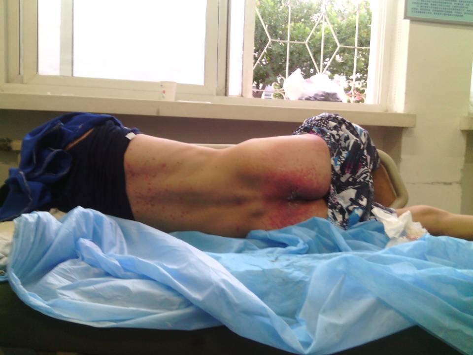 张国立在庄河中心医院重症监护室(ICU)胳膊和胸口处可以看出在看守所被殴打后的青紫