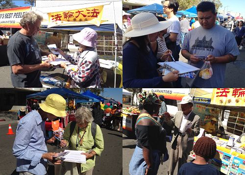 ![]() 图1:旧金山湾区的法轮功学员在奥克兰中秋街会上传播法轮功的真相。 |