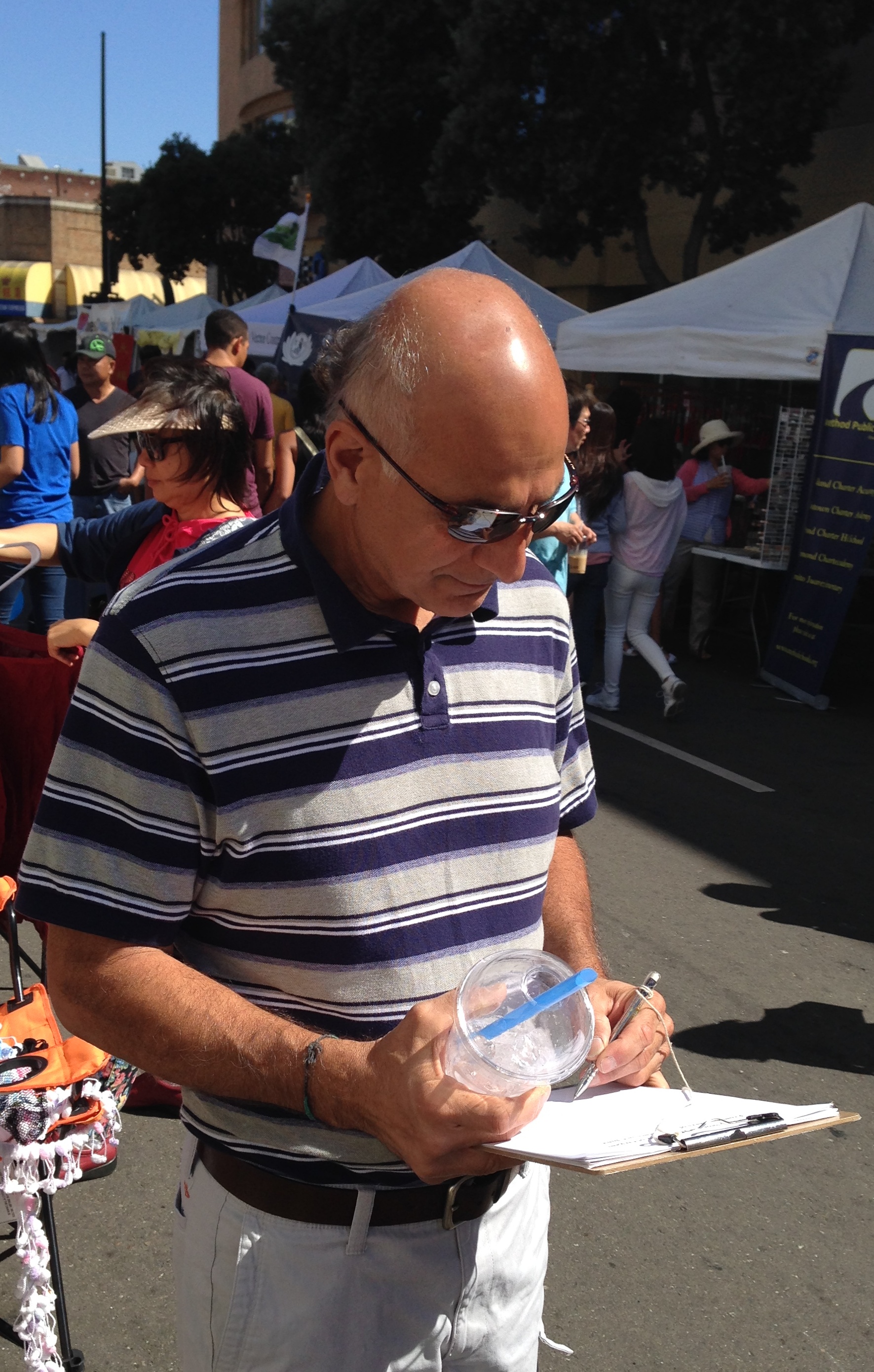 玮柏(Wilber)经过法轮功学员的摊位时,立刻在征签表上签名。学员问他:听说过法轮功吗?他的回答是肯定的。学员又问他是否听说过中共恶党对法轮功学员的残酷迫害。他回答,已经听说了,所以才会签名支持制止中共邪党的罪恶。