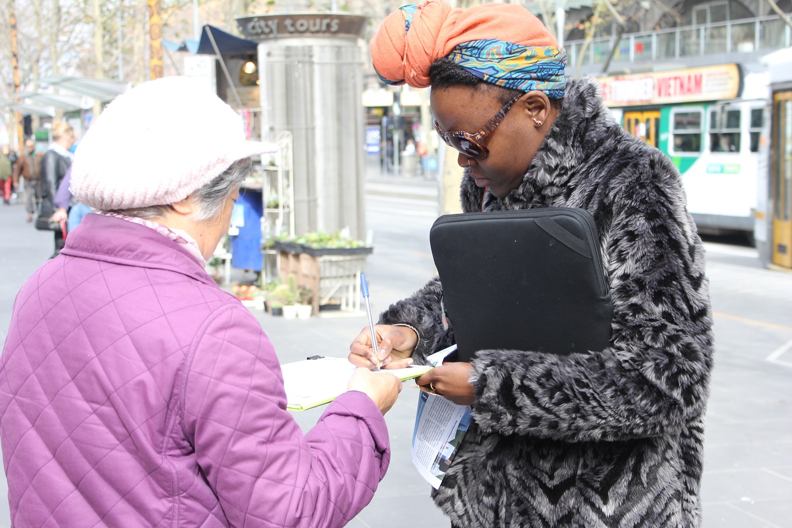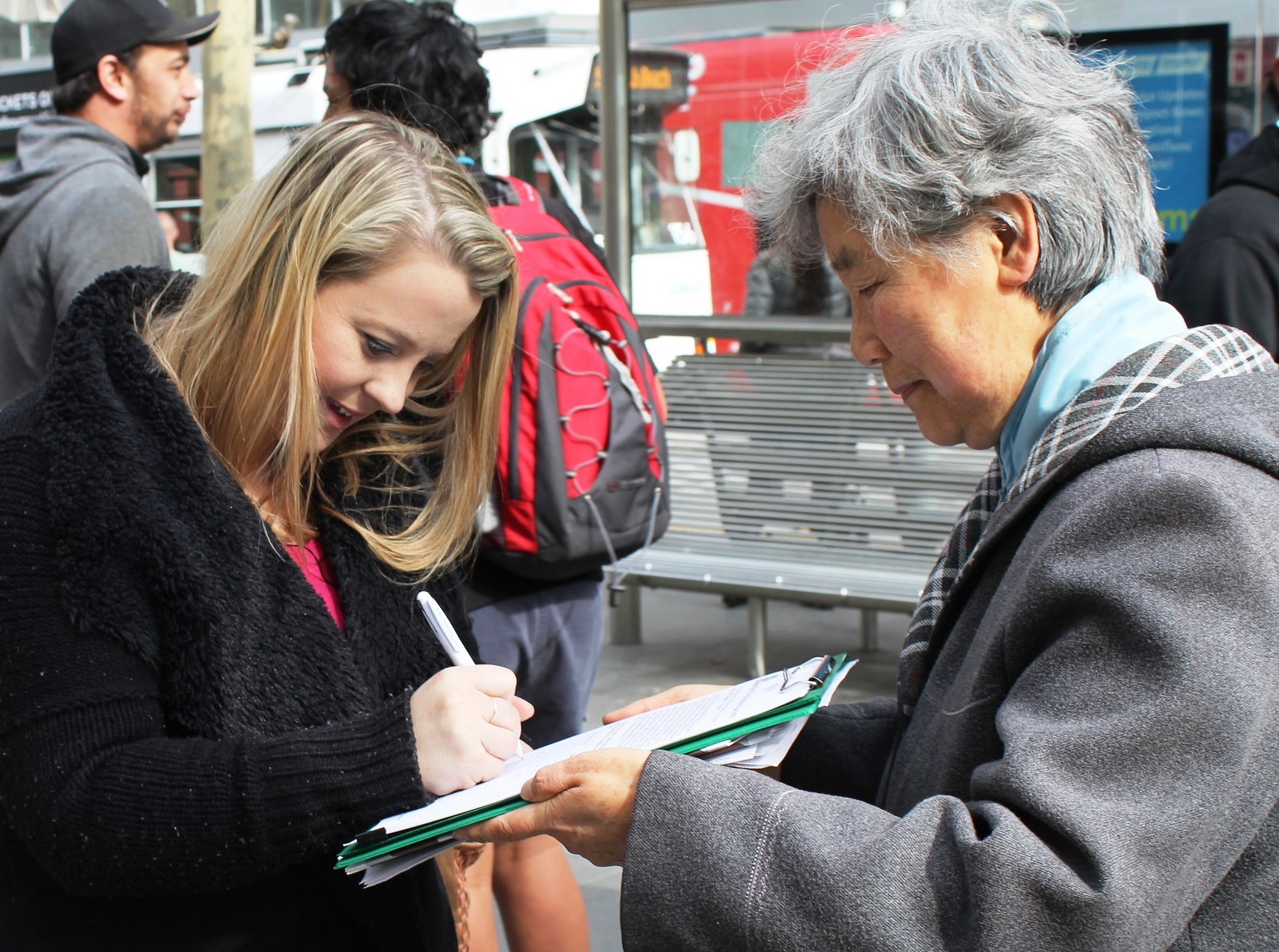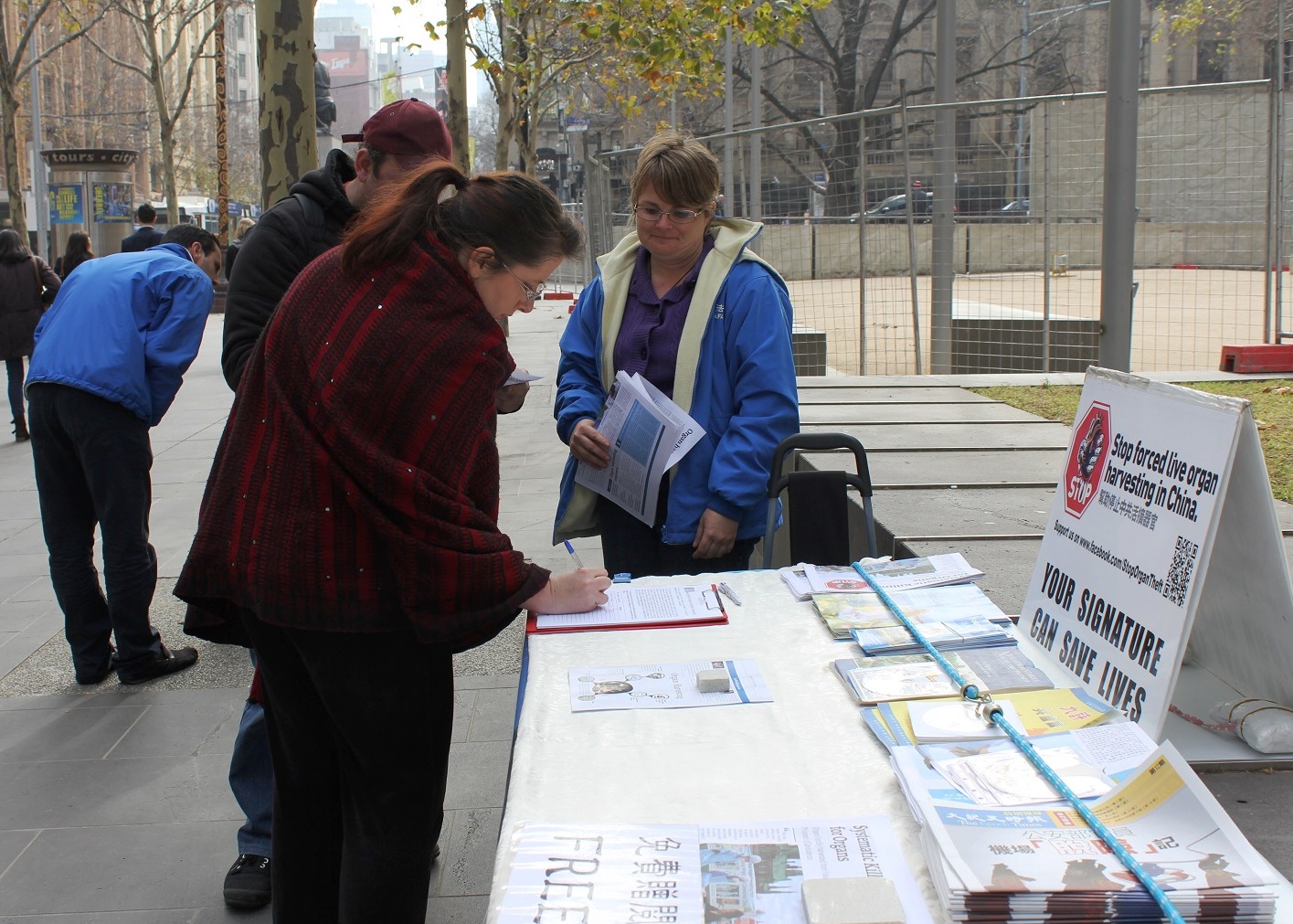 过往的西人游客和本地居民,在接过了真相传单或者和学员简短交谈之后,都欣然在征签表上签了名。