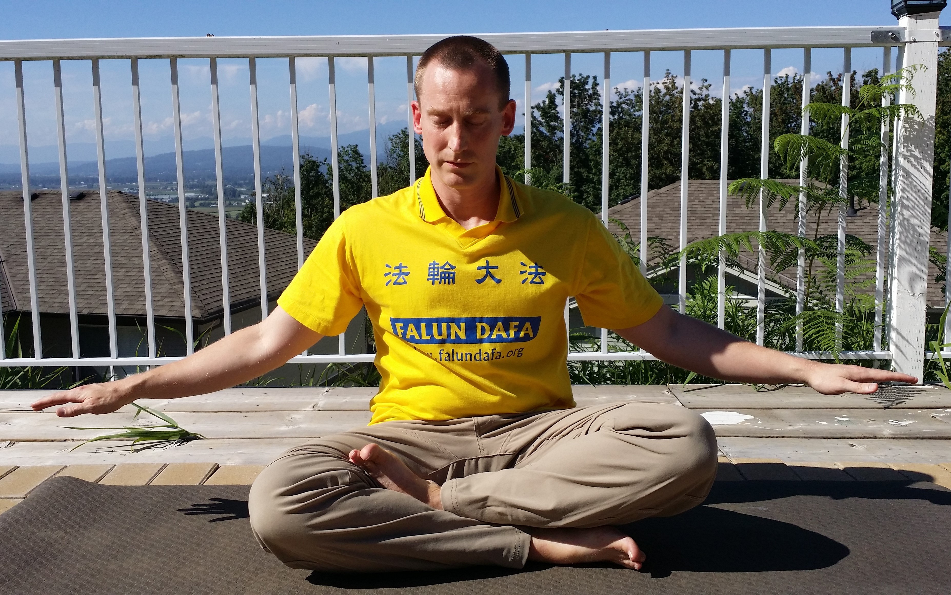 ![]() 图2:马克在炼法轮功第五套功法——神通加持法 |
