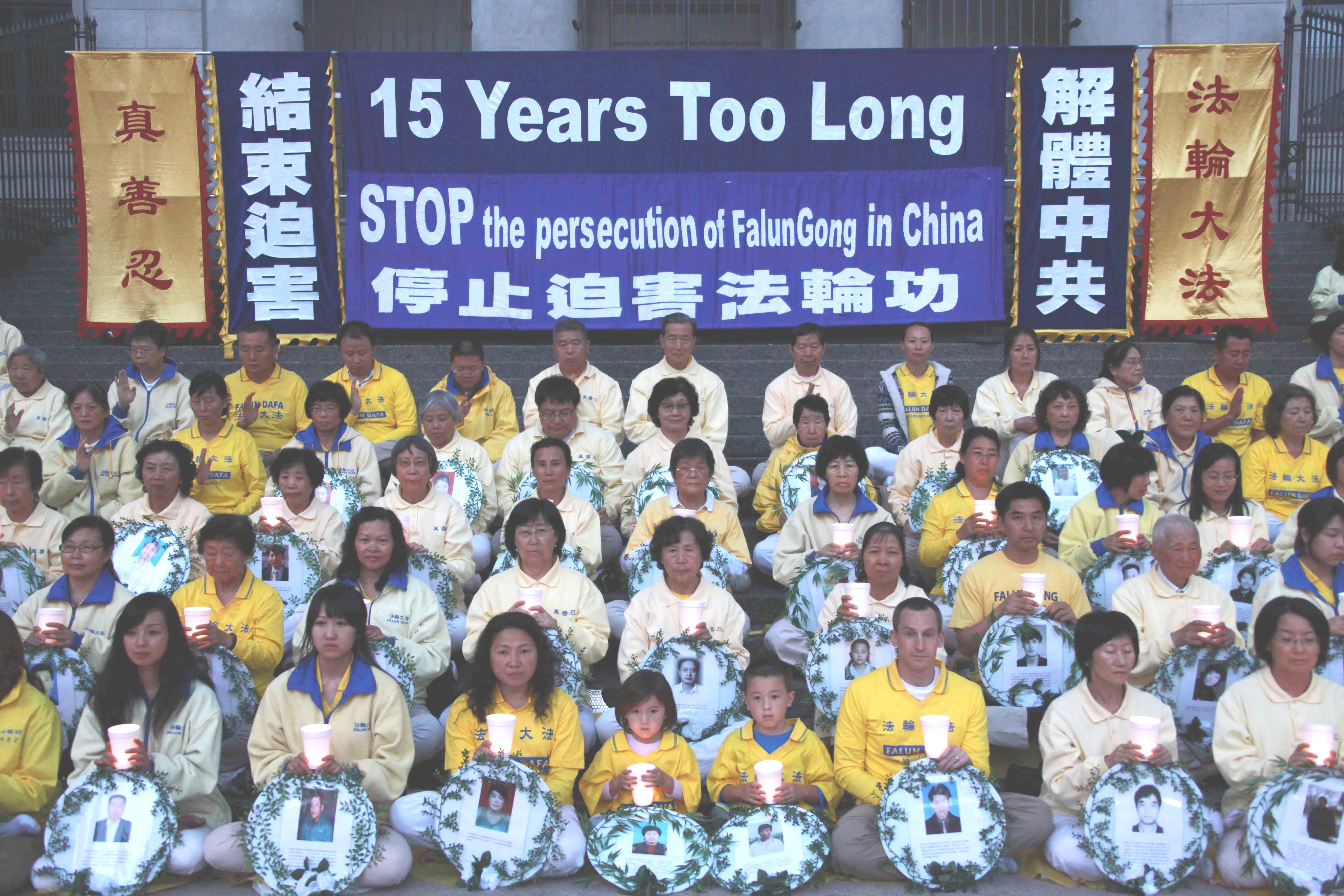 ![]() 图3:二零一四年七二零,马克(前右三)全家参加了温哥华法轮功学员举办的烛光悼念活动。 |