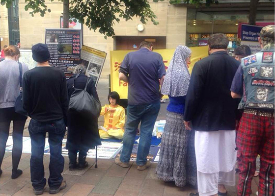 在英国格拉斯哥举办的为期十二天的第二十届英联邦运动会于二零一四年八月三日闭幕,苏格兰法轮功学员借着这个机会,在运动会期间举办了讲真相活动。