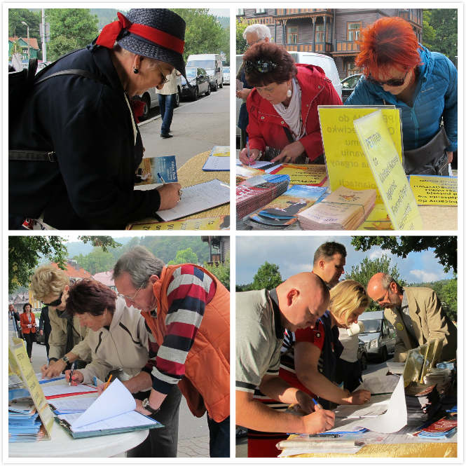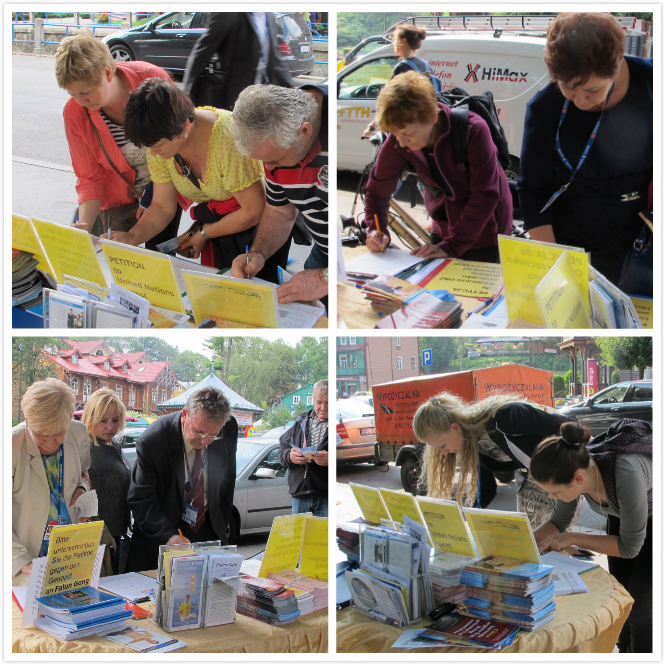 媒体记者Artur Barbarowski先生,《共和国报纸》媒体记者Jan Kowalski先生,波兰《Super Express》记者都留下签名表示支持法轮功。九月四日,在经济论坛会议结束的当天,当地网站sadeczanin.info即对法轮功学员在此征签作出详细报道,该报道当天点击量即达到两千多次。