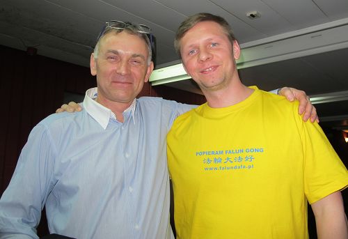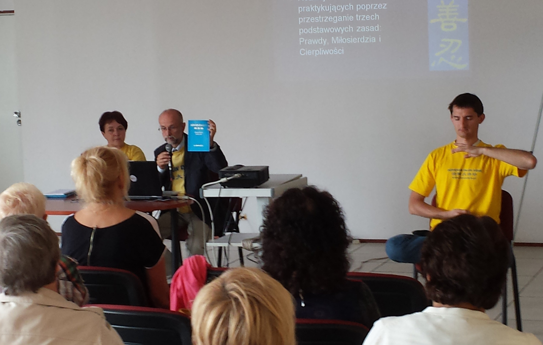 还有一位练××功的波兰气功师停下自己挣钱的生意,特意来找法轮功学员说:“我的师傅(一个中国人)说法轮功是政治气功,不要接触,可我这几年在博览会上观察你们,又觉得法轮功挺好,能不能给我说说,到底是怎么回事呢?法轮功为什么要参与政治呢?”法轮功学员翻开《转法轮》第一讲说:“我的师父说‘前些年有许多气功师传功,他们所讲的东西都是属于祛病健身那一层次的。当然不是说别人的功法不好,我只是说,高层次上的东西,他们没有传。’我个人理解法轮功第一次公开向人类传授了高层次的法理,受到太多人的拥护和有太多的人愿意参与实践,这引起中共的恐慌。法轮功不问政治,是政治非要问法轮功,中共对法轮功的迫害是人所共睹,那些迫害手段都是非人类能够承受的,法轮功所做的一切从开始到现在都是讲真相反迫害,如果这也定义为讲政治,这个政治是有良心的人都要讲的。你的师傅是中国人,应该是不了解事实真相,希望你的师傅能来波兰了解真实的法轮功。”这位气功师明白真相后,马上购买了一本《转法轮》,不仅在征签簿上签名反迫害,而且关闭手机,开始和法轮功学员一起学炼起五套功法。