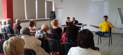 ![]() 图8-9:波兰气功师听法轮功学员讲真相 |
