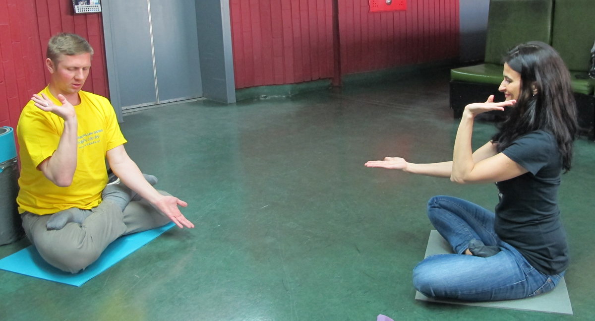 ![]() 图14:HERICH PAWEŁ先生自豪地展示学会的法轮功功法 |
