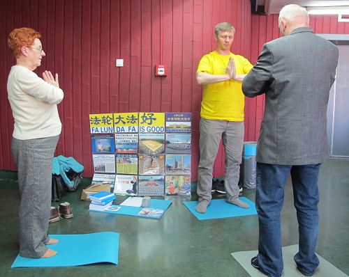 ![]() 图3:波兰民众现场学习法轮功功法 |