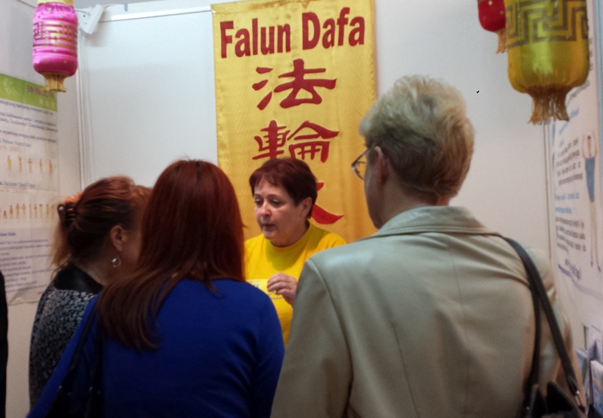六十六岁的HELENA POTOK女士三年前在博览会上学习过法轮功,但在此后她又学习了很多各种各样的其它功法,回家后她和女儿一种功法一种功法的练习,经过三年的比较,她们得出一个结论:法轮功是最好的。她的女儿对她说:“妈妈,快去博览会上找法轮功,不要再耽搁了,这次学习功法要一次性全学会。我是去不了,所以您一定要全学会,另外要买那本书,就是蓝色封面的,千万别忘了。” HELENA POTOK女士在春季健康博览上激动地告诉法轮功学员这些话,然后非常认真地和法轮功学员开始学炼功法,为确保每个动作都做正确,她要求法轮功学员和她做一对一的教功练习直至她全部学会。走前她非常高兴地买了一本《转法轮》,并在反活摘器官的征签簿上签下自己的名字。