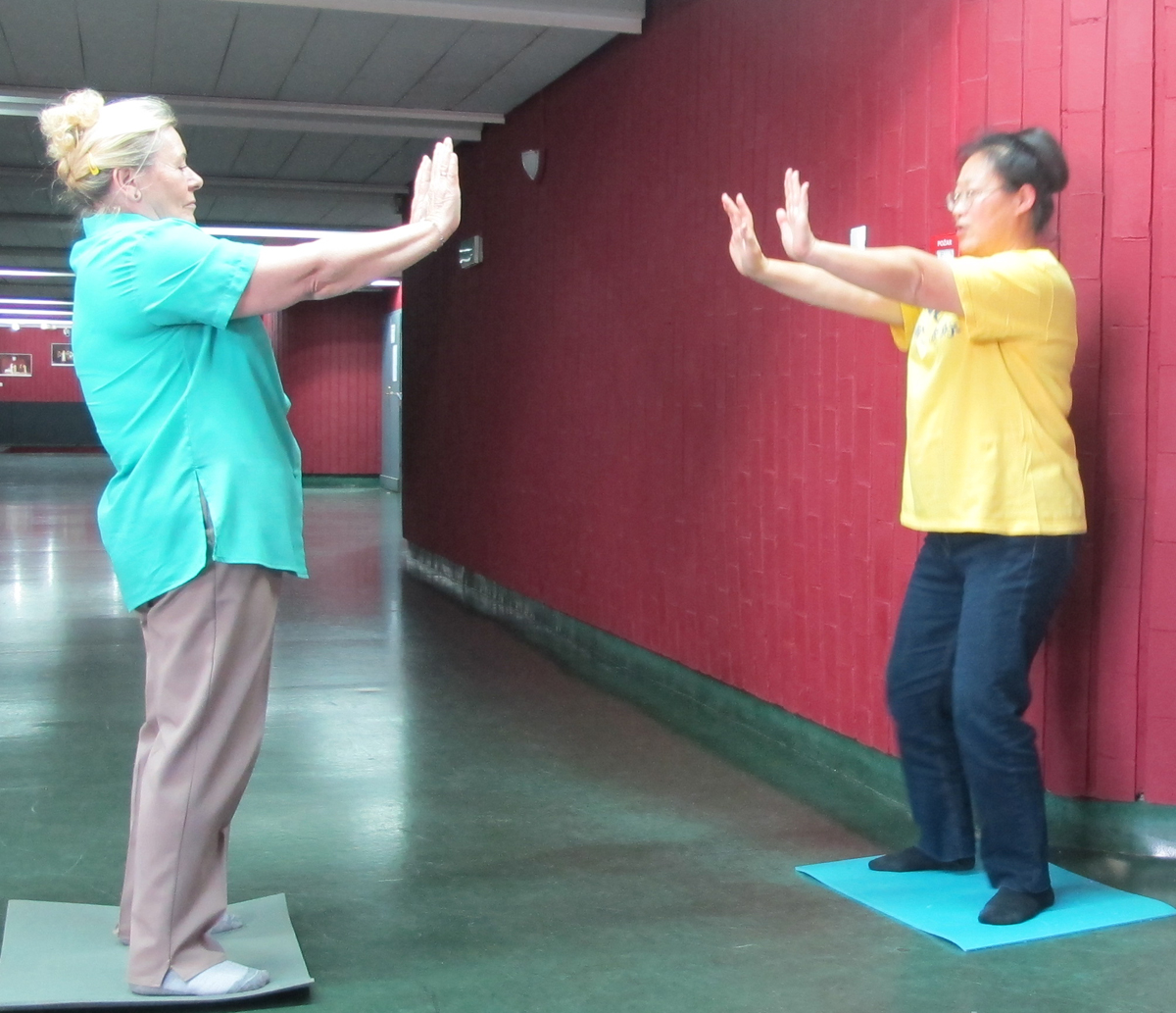 ![]() 图15:HELENA POTOK女士与法轮功学员一对一的学炼功法 |