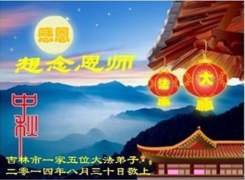 每逢佳节倍思亲、愿师尊中秋节日快乐!我们这里的大法弟子一定会谨记师尊的教诲,认真学法、用心学法,坚持集体学法,互相圆容,整体升华,救度更多众生,众生感恩师尊,感恩大法,谢谢师尊!