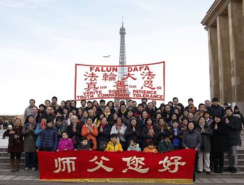 学员中有小弟子从小跟家长学炼大法,唱起《法轮大法好》就特别开心。也有八、九十岁的老婆婆,身体仍非常健朗,跟着年青的学员一起站立二个多小时都不觉得累。也有从大陆来的法轮功学员第一次在海外参加新年活动,当高喊“恭祝师父新年快乐”时,忍不住激动流泪。