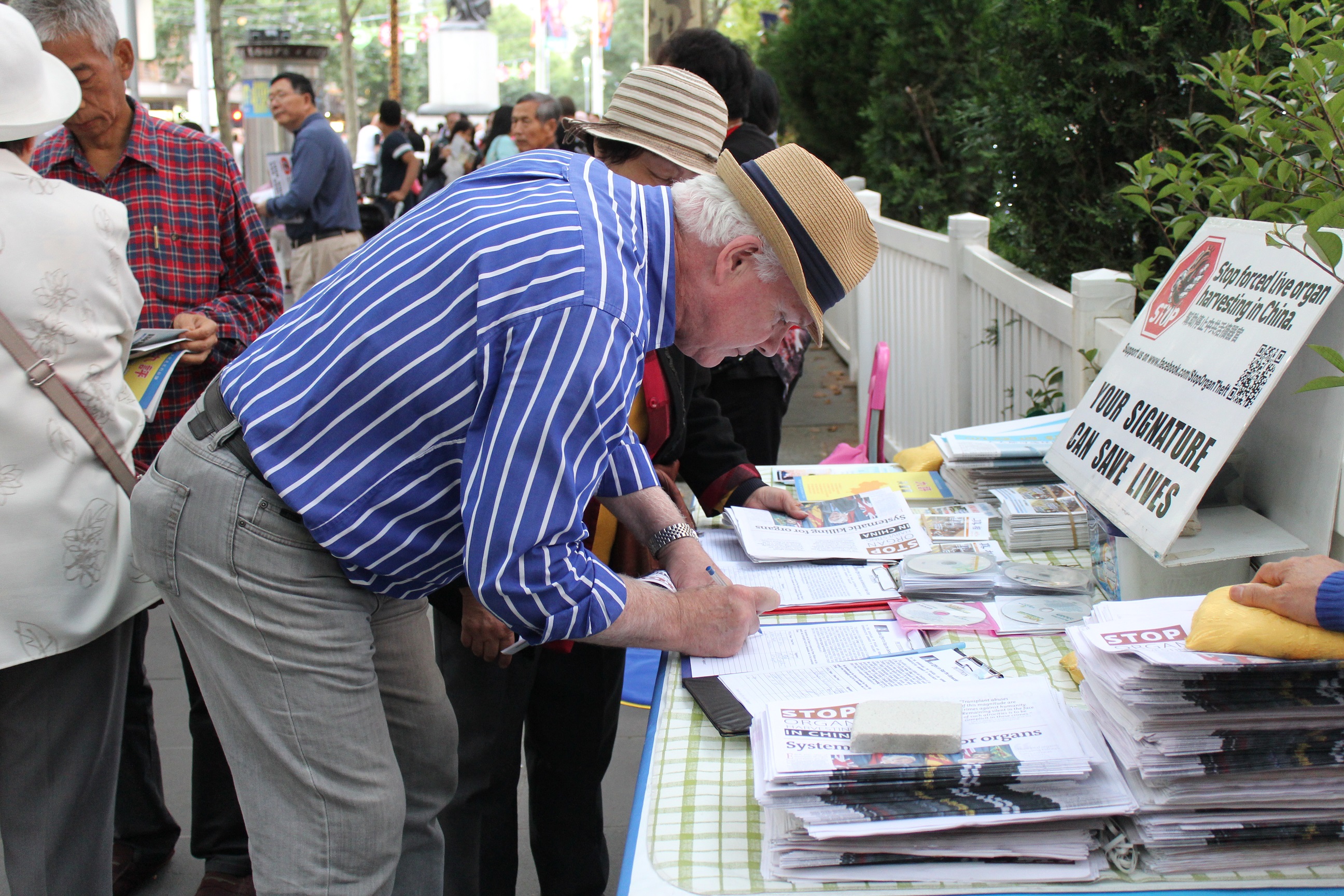 来自维省第二大城市——吉朗市的心理医生马修(Gerald Mathews)博士在签名后告诉记者:“我在澳洲行医二十五年了,十年前开始听说法轮功,知道法轮功在中国遭受迫害,因为我的同事加入了‘医生反对强摘器官’(DAFOH)国际组织,所以也了解到有关活摘器官的消息。”