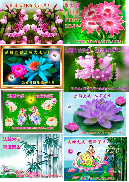 以下是2014年世界法轮大法日,一些大陆民众发给明慧网的部分贺卡。