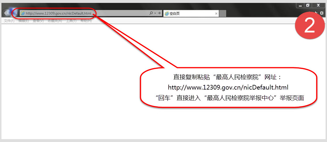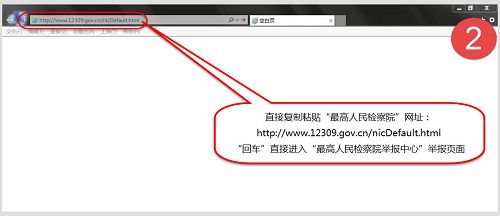 二、再次打开IE浏览器,在IE地址栏直接粘贴“最高人民检察院”网址“https://www.12309.gov.cn/nicDefault.html”,按“回车键”,直接进入举报网页。