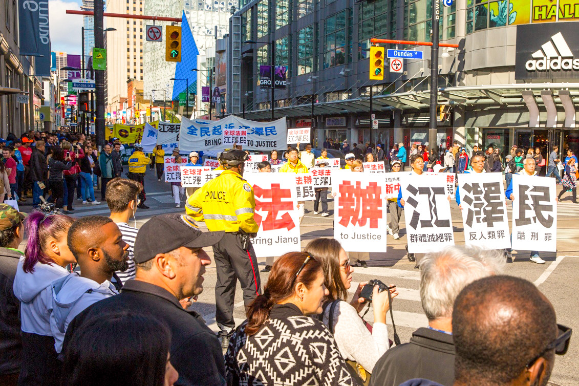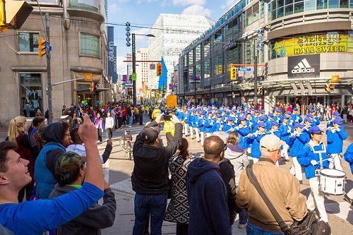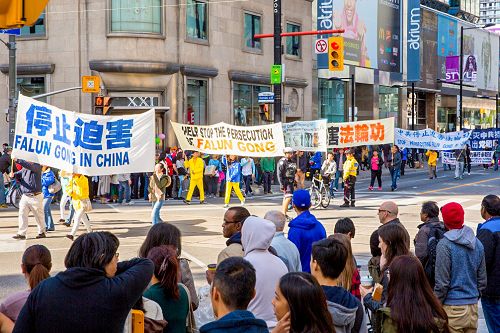 ![]() 图1-9:二零一五年十月十日中午,多伦多法轮功学员在市中心举行今年诉江以来的第二次诉江大游行,所到之处引起民众的关注,很多民众表示支持并在制止活摘的请愿信上签名。 |