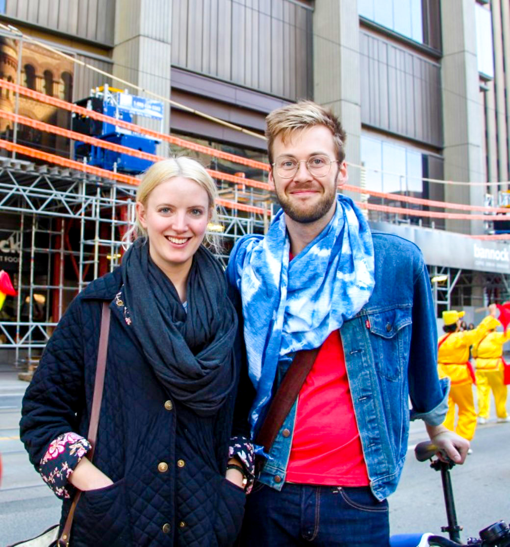 来自美国的David和俄国的Marina观看了游行的全程,David说:“打头阵的那个乐团真的太棒了,非常震撼人心。我看到后面的队伍,才明白了是反迫害的游行。我觉得迫害应该马上停止,任何地方,任何国家都不应该有迫害。”