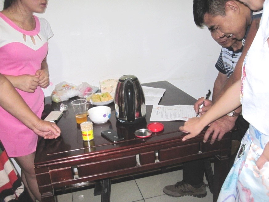 当晚我被劫持到第二看守所拘留仓。每个拘留仓有二间房,大小一样,活动室有门通外面,有小水池用于冲凉洗衣,卧室有一大水泥平台,一厕所,白天两室相通便是工场,睡前两室间锁门。拘留仓几乎不见天日,六米多高的墙,顶上中间是一天窗,在四米多高的地方有狱警巡视的观察窗,送饭窗口平时铁板锁着。由于长期面对的是墙壁,没有远景,在思念亲人的同时也非常想念外面的风景和觉得自由的宝贵。二三十人挤在一个水泥平台睡觉,每天早上六点多一些起床,餐后几乎马上开工,晚饭后要做工到晚上九点多,遇到赶货经常做到晚上十二点。每天任务必须完成才能睡觉,主要做彩灯、胶花、炮仗纸筒等。