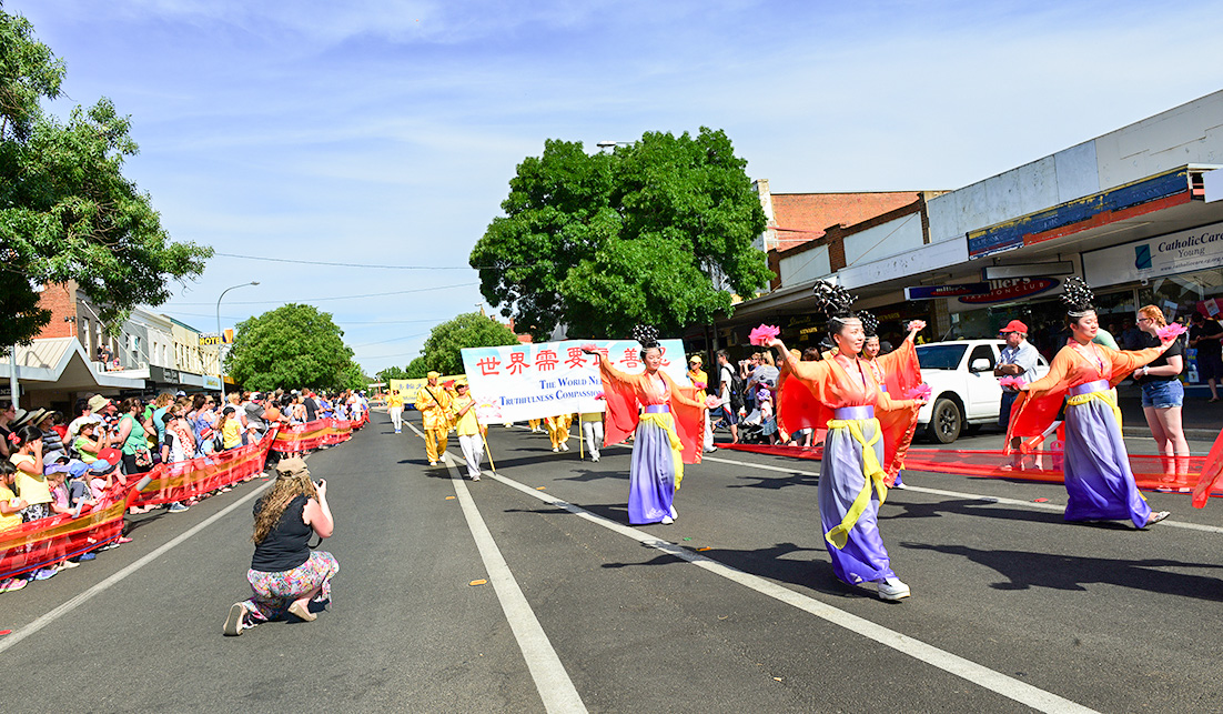 【明慧网二零一五年十二月十八日】(明慧记者华清悉尼报道)二零一五年十二月五日,悉尼法轮大法学员参加了澳洲纽省杨镇的(National Cherry Festival – Young)全国樱桃节游行。许多民众,其中不乏在此地工作的华人,都称赞法轮大法游行队伍的美好。