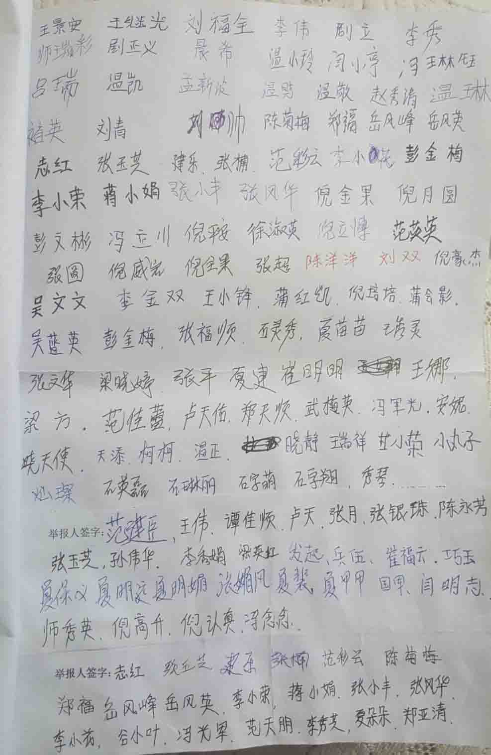 河北省石家庄市良村开发区138人签名举报江泽民