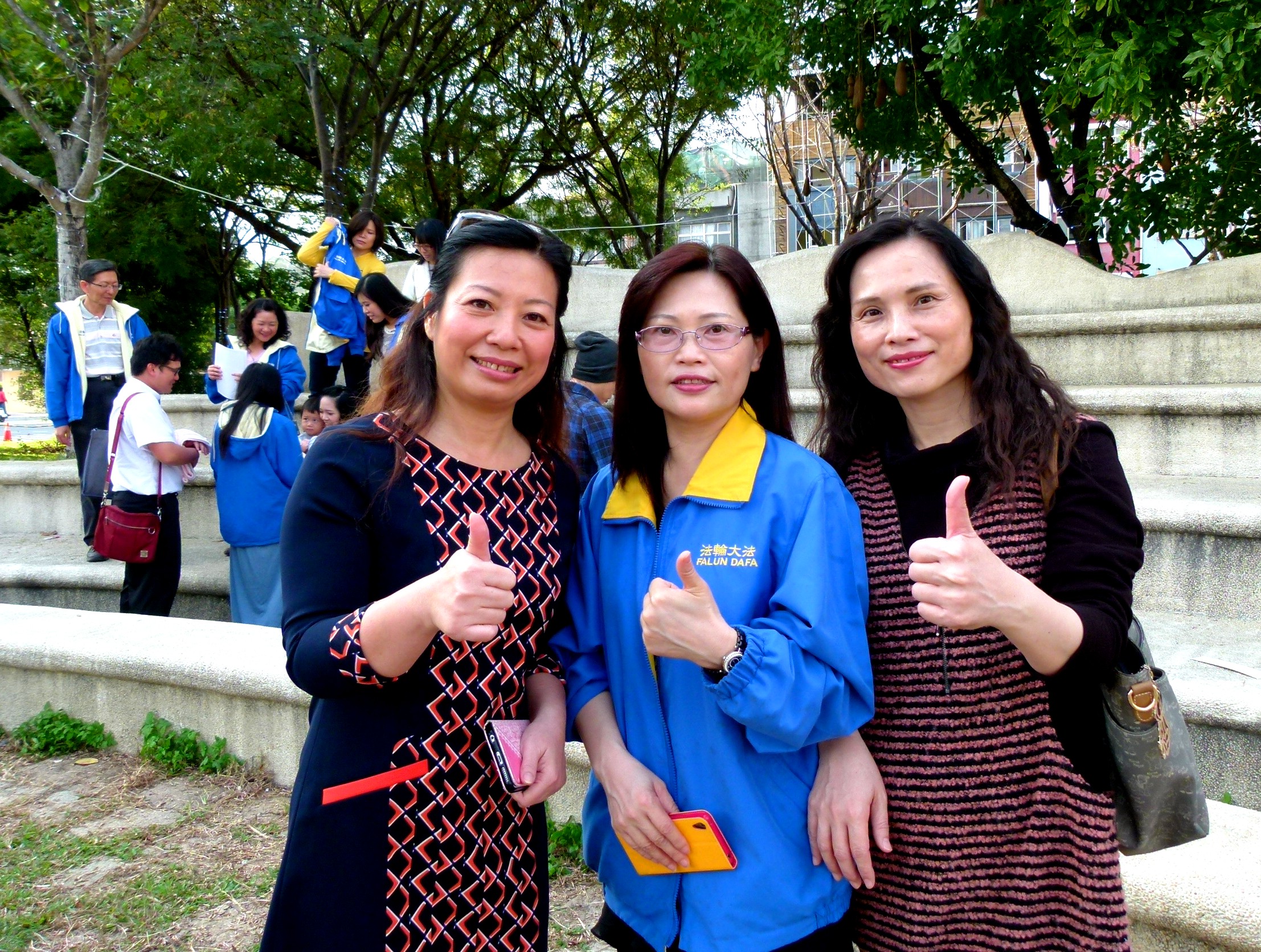 图4:新光人寿处经理林秋美(左)与法轮功学员合影。