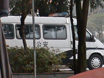 什邡市法院十二月三日下午三点在该院二楼一庭非法庭审,法院门口布满了特警、国安、国保、便衣、交警及社区人员,法院周围还有警车巡视。林荫道边各类警車、警察,如临大敌。