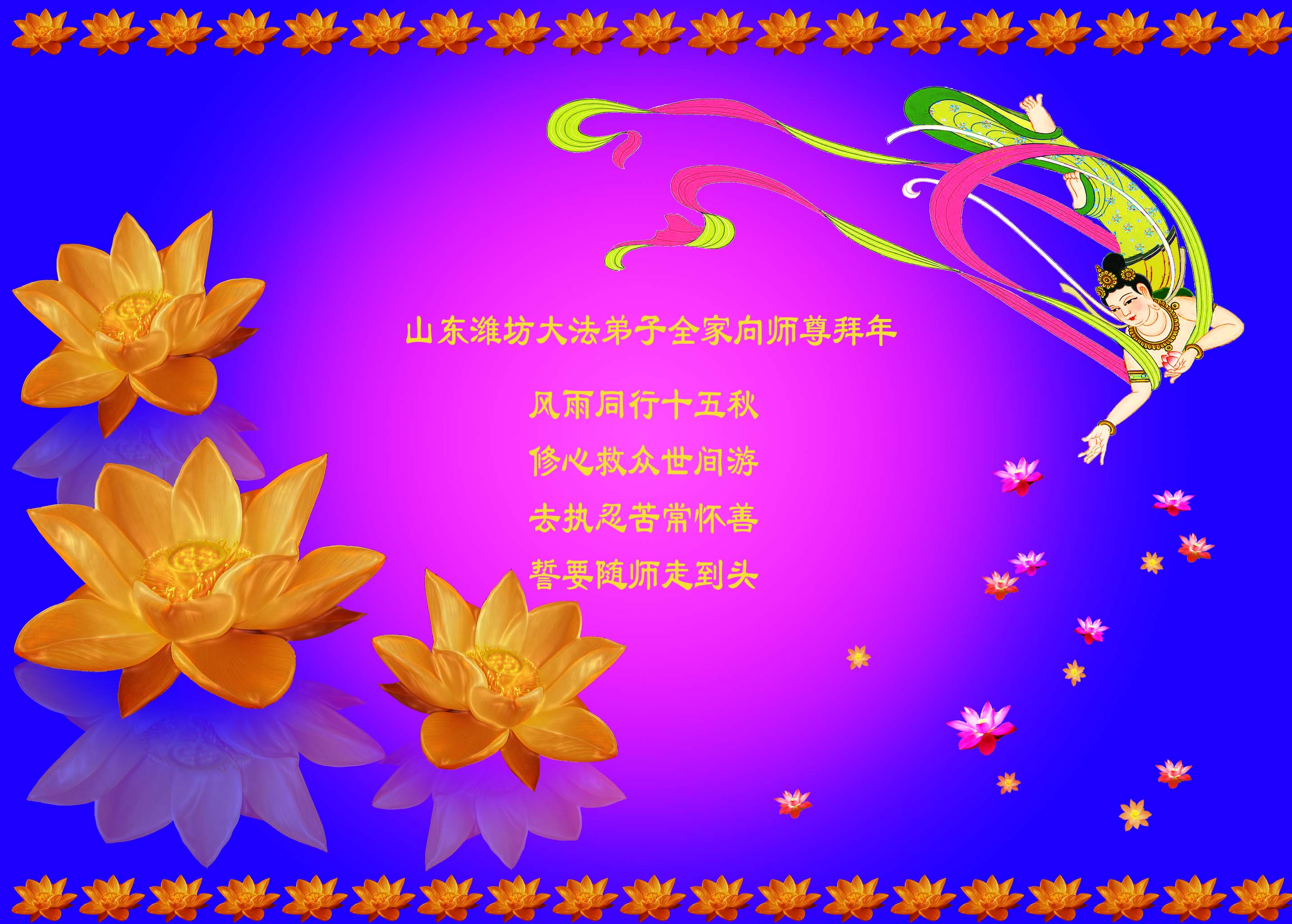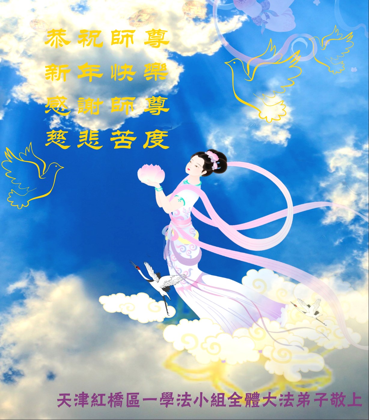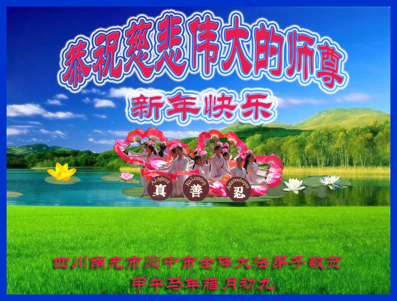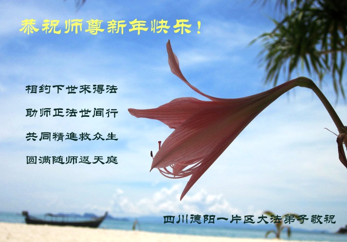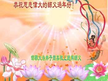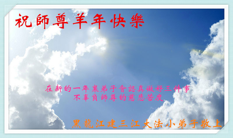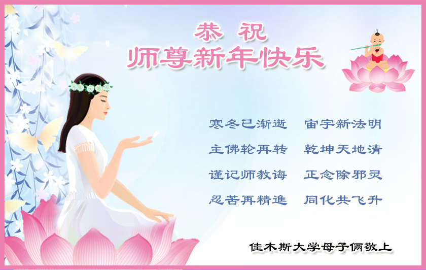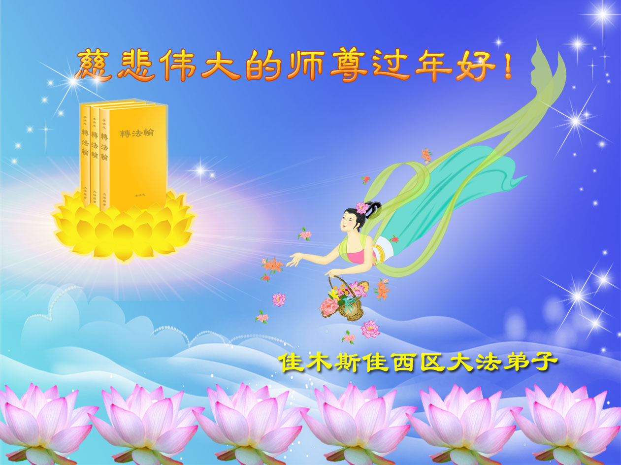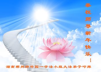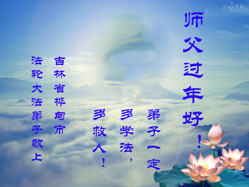 在新的一年里,我们一定按照师尊的要求做好三件,加倍弥补以前耽误的时间,严格要求自己,精進、精進、再精進,多救人,助师正法,完成史前大愿。